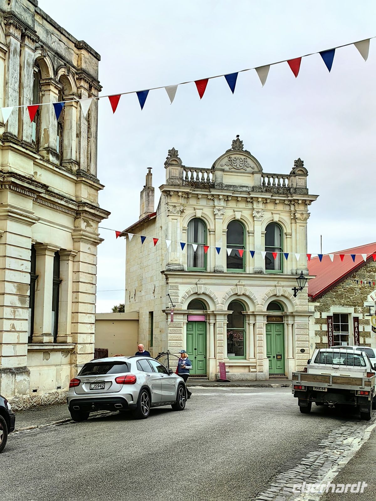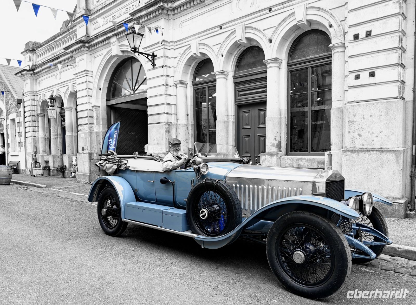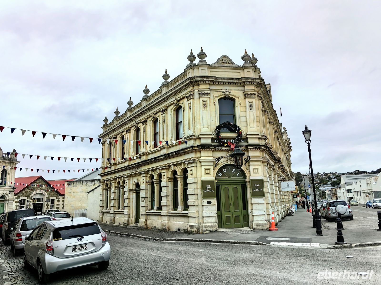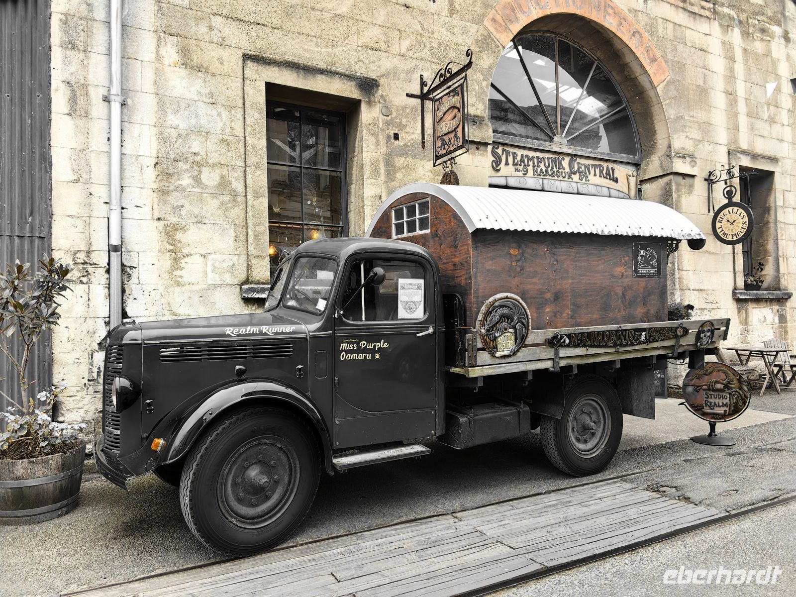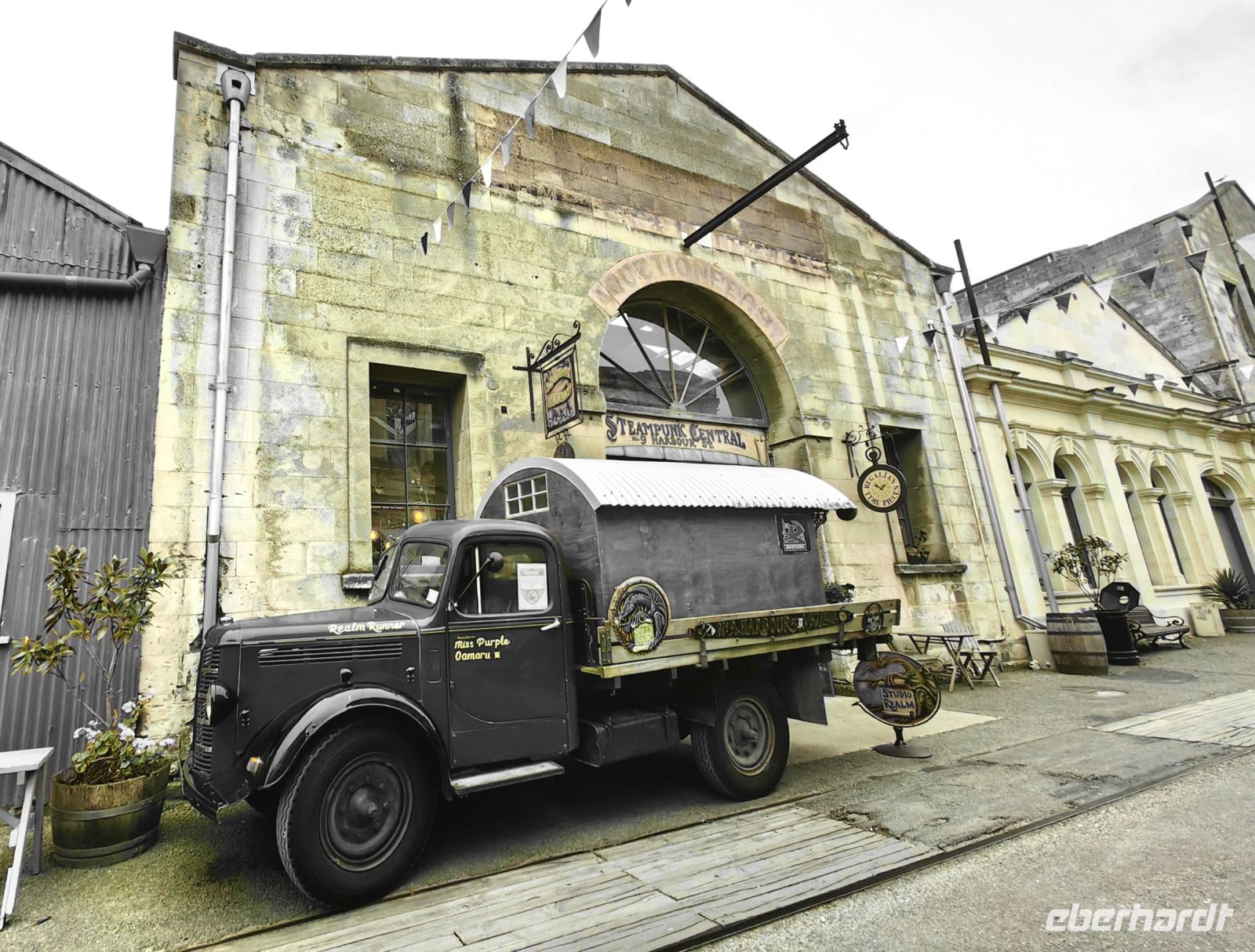 Wir halten wenig später am Lake Pukaki, in der Hoffnung, noch ein Foto vom Mount Cook schießen zu können. Dieser versteckt sich allerdings in einer dichten Wolkendecke und so fahren wir gleich nach Oamaru an der Ostküste des Waitaki District weiter. Diese faszinierende Stadt im viktorianischen Stil gilt als Steampunk Headquarter, die Museen und die vielen Künstler, die sich im Stadtteil rund um den Hafen herum angesiedelt haben, sind absolut sehenswert. Wenn wir nicht wüßten, daß gerade das Jahr 2024 begonnen hat, würden wir uns hier nicht wundern, wenn Sherlock Holmes und Doktor Watson gleich mit einer Kutsche um die Ecke kämen. Kleine Lädchen sind voll mit Alltagsgegenständen der viktorianischen Zeit, an einer Ecke steht ein Einrad, der Markt könnte gut in eine Filmszenerie von 1880 passen und wir treffen sogar einen Herrn, der einen spektakulären Oldtimer, der 111 Jahre alt ist, vor unseren Augen startet und hinwegtuckert. Hier hätten wir gern noch ein wenig verweilt, wenn nicht ein Boot am Nachmittag auf uns warten würde.