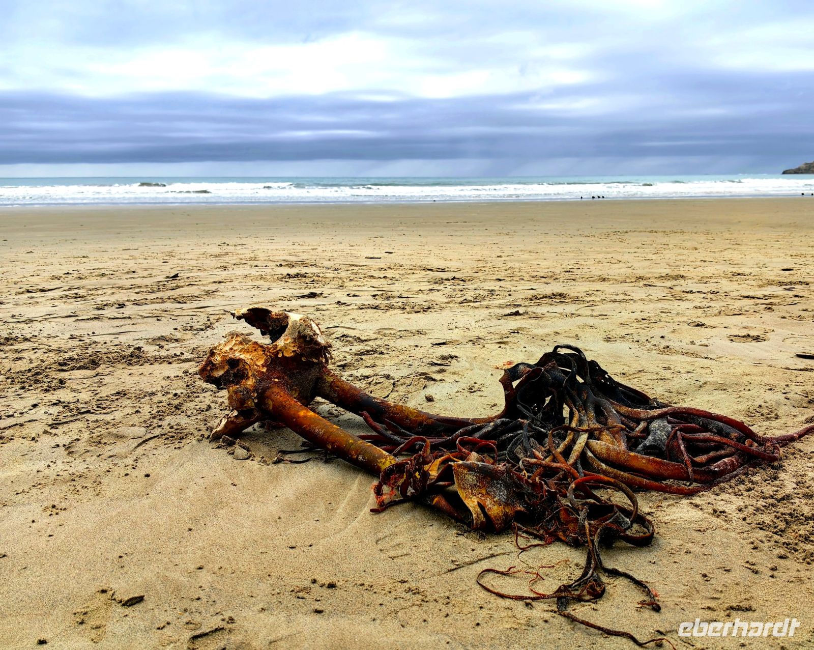 Wenig später halten wir an einem Campingresort, wiederum an einem Strand und machen eine gemütliche Mittagspause, umringt von den hungrigen Möwen.