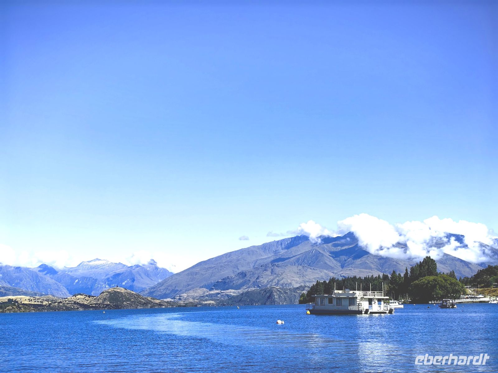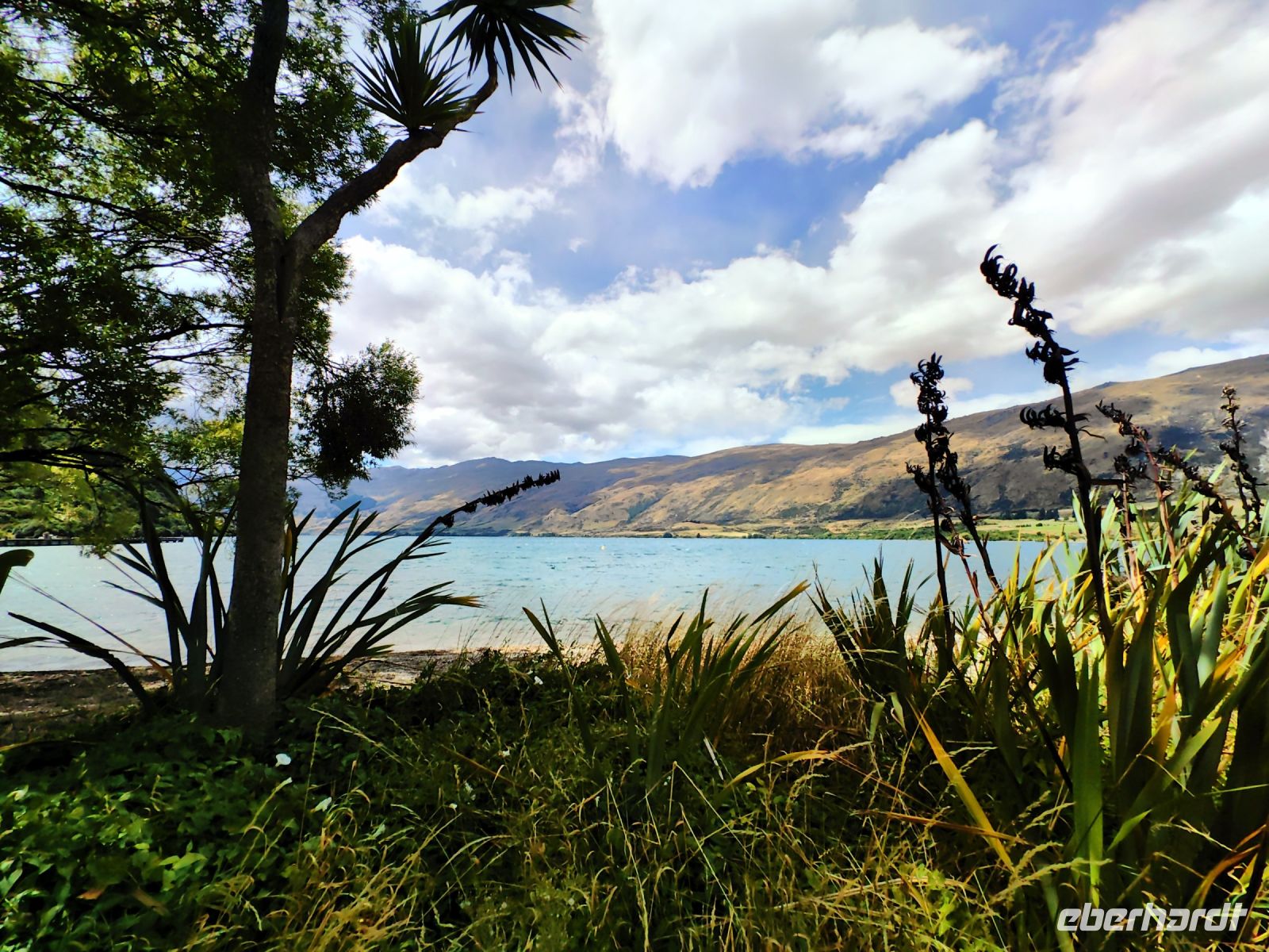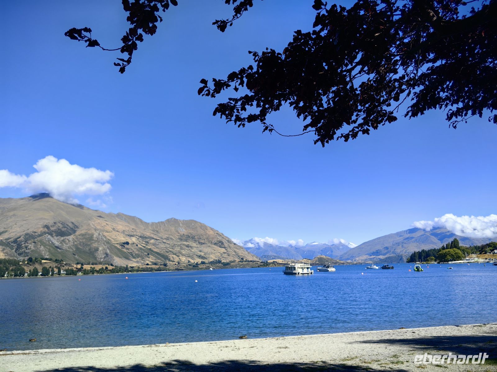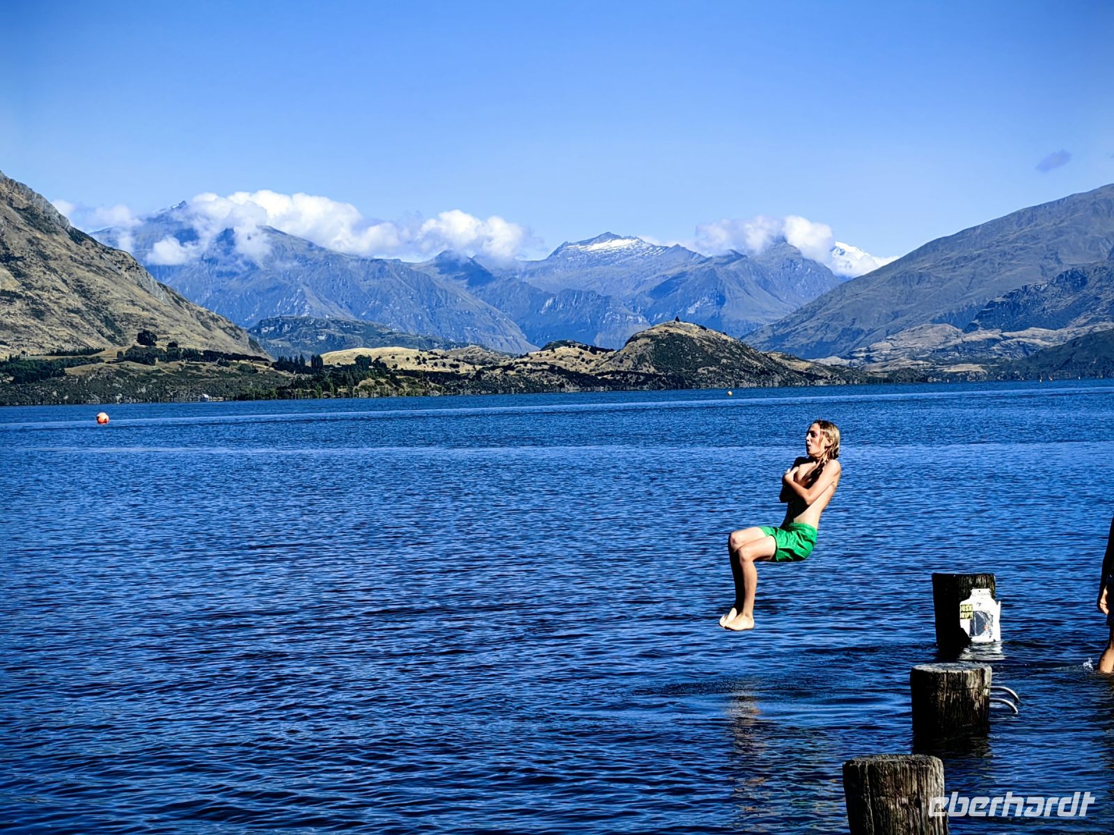 In Wanaka machen wir am gleichnamigen See eine Kaffeepause. Dieser viertgrößte Binnensee des Landes liegt in der Region Otago und sein Name leitet sich vom Maoriwort Oanaka ab, was so viel wie Platz des Anaka bedeutet. Als wir ankommen beäugen uns Enten und Schwäne und die Kinder planschen laut quiekend im Wasser herum. Wir lassen uns unseren Kaffee am Ufer schmecken und saugen diese Idylle in uns auf.