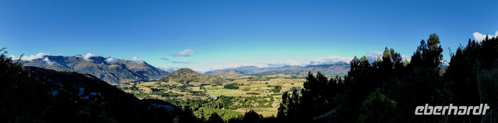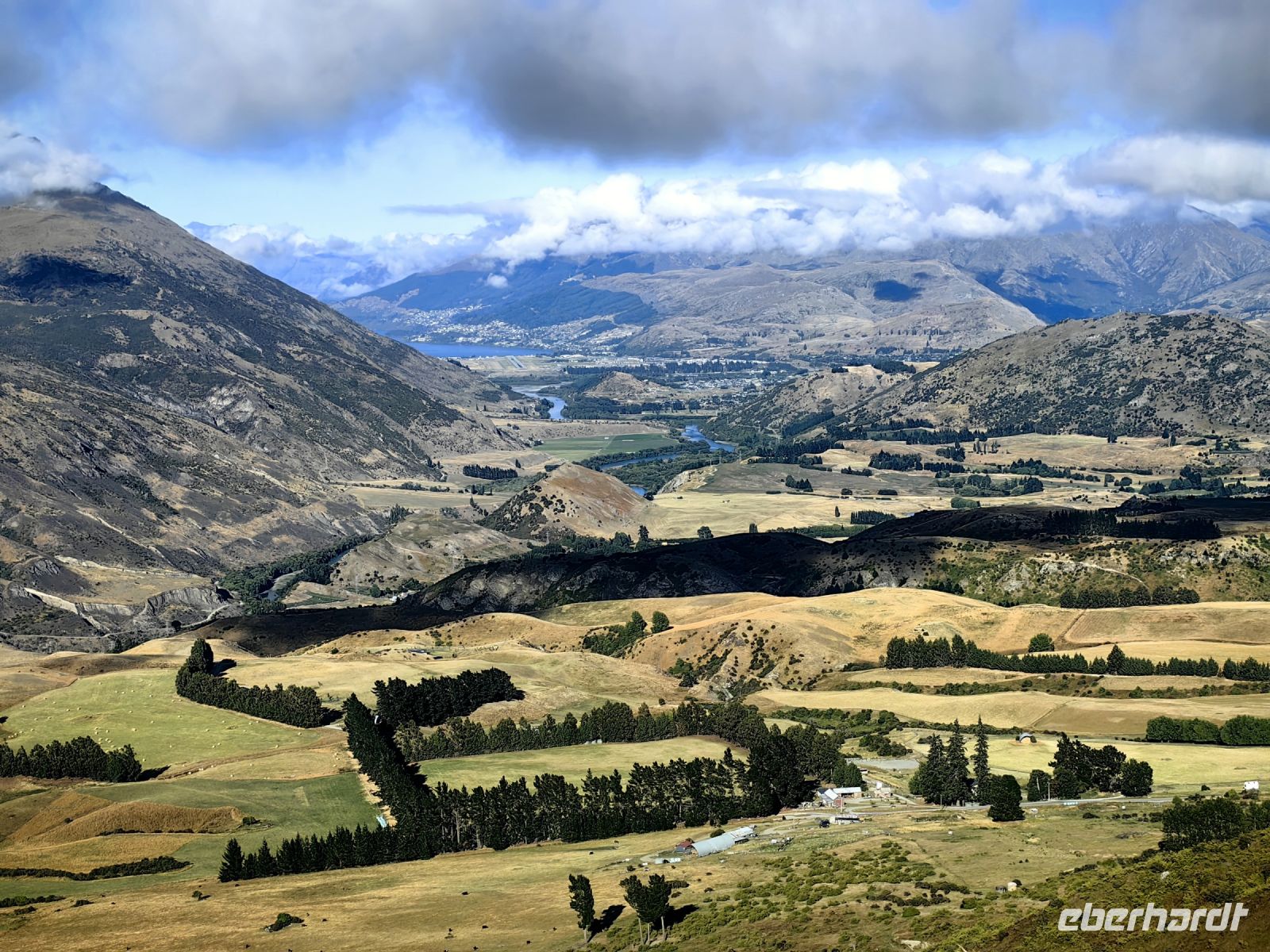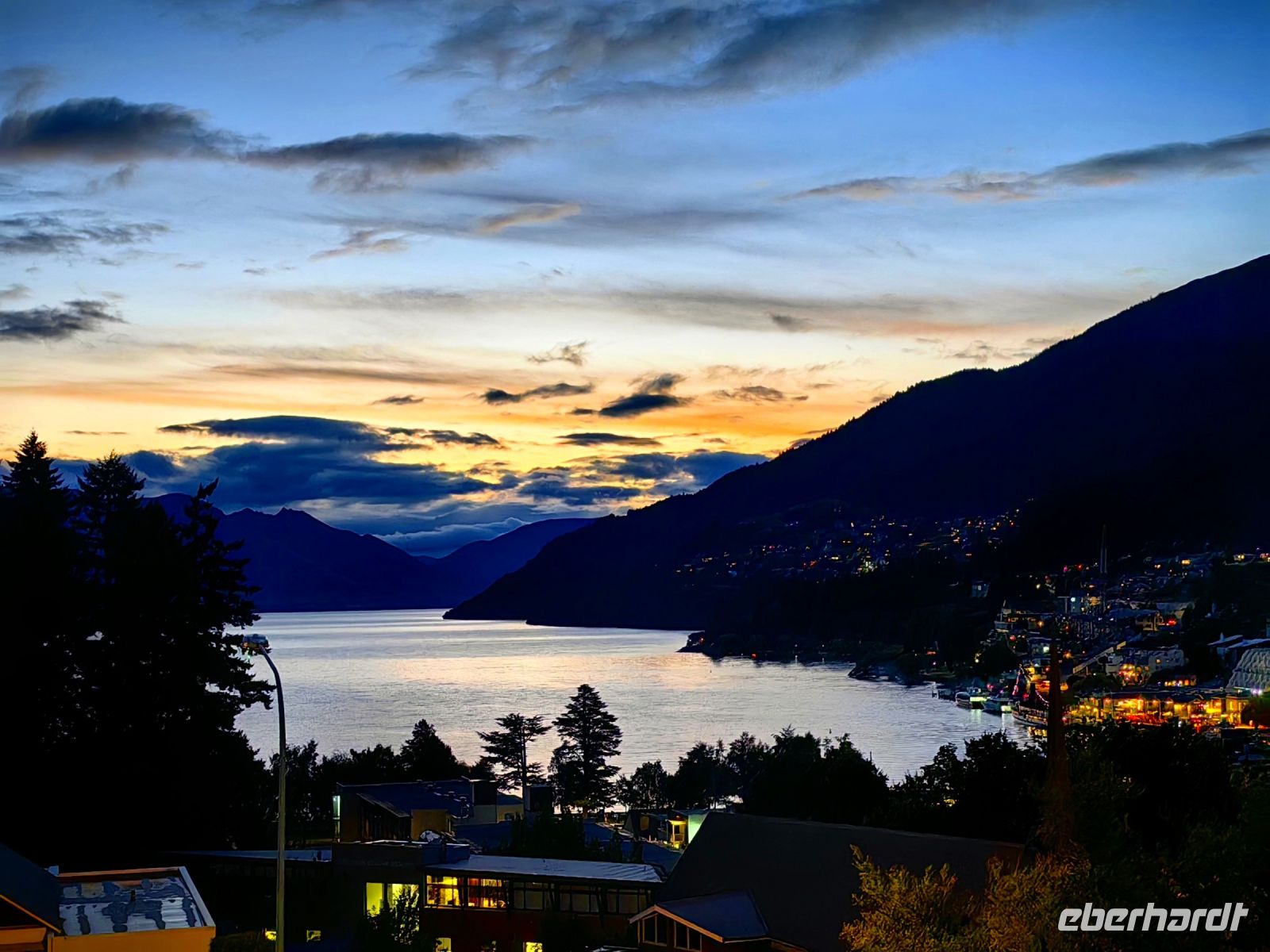 Am Nachmittag erreichen wir unser Ziel: Queenstown. Mit seinen hoch aufragenden Bergen und seiner Lage am See ist dieser Ort ein Zentrum des Abenteuers, das vor Adrenalin nur so strotzt. An den Ufern des kristallklaren Lake Wakatipu kann man zahlreichen Wassersportarten nachgehen, alles umrahmt von einer dramatischen Alpenszenerie. In der Innenstadt gibt es Bars und Cafés für jeden Geschmack, alle locken mit Live-Musik am Abend, eine Gondel fährt auf den Hausberg hinauf und obwohl der Ort nicht mehr als 15.000 Einwohner zählt, ist hier egal ob Sommer oder Winter, immer Saison.