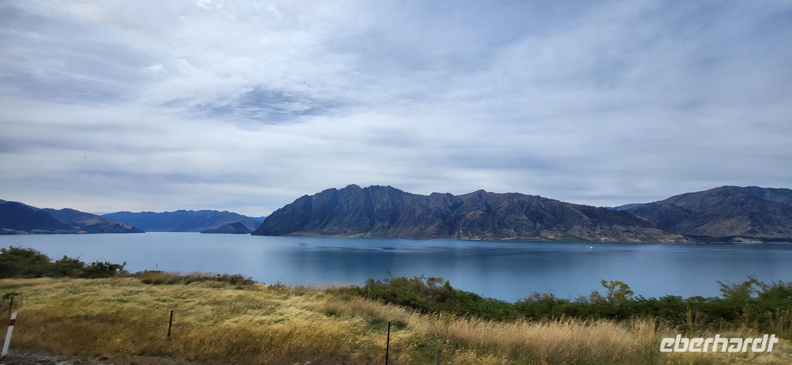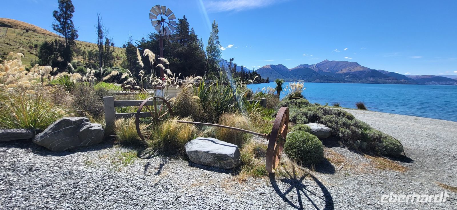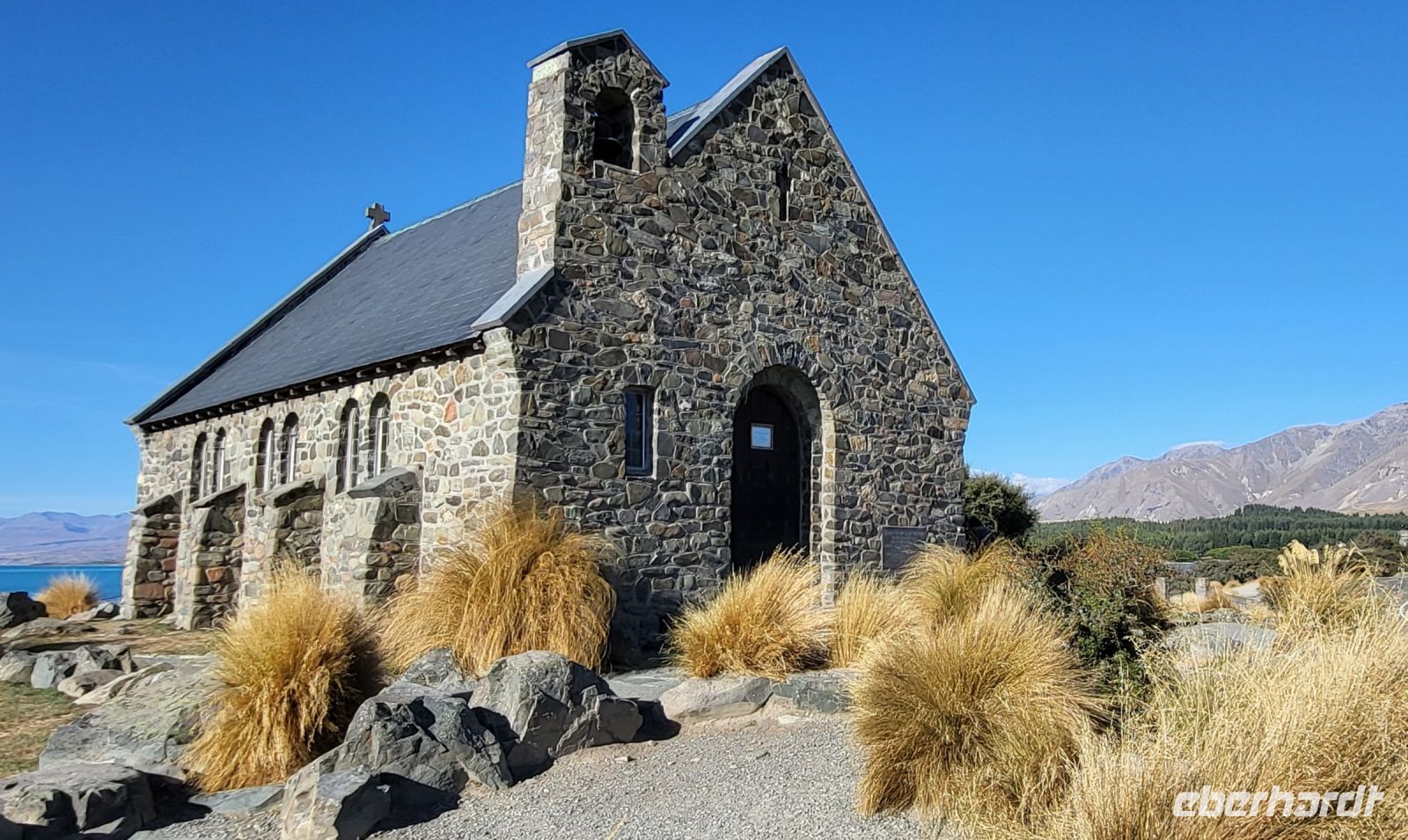 Mit Blick auf die vor uns liegende Bucht sehen wir eine deutliche Wetterbesserung. Wolkenloser Himmel erwartet uns und so ziehen wir frohen Mutes am Pazifik entlang weiter Richtung Christchurch. Wir fahren nun durch die Provinz Canterbury, die als reichste Provinz Neuseelands gilt und wo unter anderem Weizen und Gerste angebaut wird. Erstaunt stellen wir fest, dass sich die Landschaft ständig ändert. In Christchurch angekommen überrascht uns Roger mit einer schönen Stadtrundfahrt und wir sehen auch heute noch 13 Jahre nach dem Erdbeben von 2011 auf beeindruckende Art und Weise, dass sich die Stadt noch immer nicht ganz davon erholt hat. Viele Freiflächen befinden sich dort, wo einst Gebäude oder Hotels standen. Die bekannte Kathedrale befindet sich völlig verpackt im Wiederaufbau. Wann diese wieder restauriert zu sehen ist, steht in den Sternen. Unsere Mittagspause machen wir am sogenannten Arts Centre, dem ehemaligen Universitätsgelände, wo noch etliche Prachtbauten aus vergangenen Zeiten unversehrt stehen, die heute für verschiedene Kunstprojekte genutzt werden. Daneben der Botanische Garten, der ebenfalls zum Spaziergang einlädt. Christchurch-eine tolle Stadt, in der wir noch viel länger verweilen könnten. Wir passieren die Kleinstadt Geraldine, die als Vogelscheuchenstadt Berühmtheit erfahren hat. Diese Region ist bekannt für viele Beerenfarmen mit Johannis, -Stachel,-und Himbeeren. Kurz darauf folgt die Mc Kenzie Country Region mit tollem Ausblick auf die Südalpen. Hier stehen ca. 10 Exemplare der Berge über 3000 m und unzählige 2000 m hohe Berge. Am Lake Tekapo, unserem heutigen Tagesziel angekommen, bringen wir zunächst einen Teil unserer Gäste zu Air Safari, von wo aus sie zu einem 50-minütigen Panoramaflug aufbrechen. Die restliche Gruppe checkt im zentralen The Godley Hotel in Tekapo ein und kann nun über die um die Ecke gelegene Brücke einen kurzen Spaziergang zur Kirche des guten Hirten mit herrlicher Kulisse auf den Gletschersee und umliegende Gebirgskette unternehmen. Der See ist bei diesem besonders herrlichen Wetter in ein unglaubliches Türkis getaucht und wir können diesen Anblick, der einer Filmkulisse gleicht, kaum glauben …