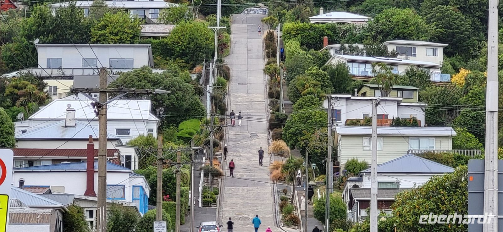 Nach einem wunderschönen Morgenrot am Lake Tekapo verlassen wir diesen mystischen Ort und steuern auf den südlichsten Punkt unserer Reise an-Dunedin (sprich „Daniden“). Zuvor halten wir jedoch am Lake Pukaki auf 500 m gelegen um einen Blick auf den noch zuvor sichtbaren Mount Cook und Mount Tasman zu erlangen. Leider versperrt am See ein Wolkenband den Blick auf die beiden höchtsten Gipfel Neuseelands mit 3.497 m und 3.724 m. Schade, lässt sich nicht ändern und so werden wir an einem anderen Tag nochmals unser Glück versuchen. So ziehen wir weiter und mit uns folgt am Wegesrand der berühmte Radweg „Alps to Ocean“, 300 km lang und welcher in Oamaru am Pazifik endet. So manche Radfahrer sehen wir sogar auf diesem Weg und staunen über deren Ausdauer. Im wunderschönen Ort Omaru mit 22.000 Einwohnern vertreten wir uns die Beine und sehen etliche alte Gebäude aus Omaru Weissstein mit schottischem Einfluss in der Harbour Street an. Mittags erreichen wir Moeraki und können hier die berühmten Moeraki Bolders (Steinkugeln am Strand) anschauen, die einzigartig in Neuseeland nur hier zu sehen sind. Eine herrliche Kulisse lädt zum Spaziergang am Meer, bei guter Luft und milden Temperaturen ein. Am frühen Nachmittag erreichen wir die schottischste Stadt Neuseelands-Dunedin, die auch als Poetenstadt gilt. Hier waren und sind noch viele Autoren, Dichter und Politiker ansässig. Hier befindet sich auch die steilste Straße der Welt, die Baldwinstreet mit 35 % Steigung, die wir uns am späten Nachmittag noch ansehen. Doch zurück zu Dunedin. Da wir noch einen Termin zu einer Bootsfahrt auf der Otago Halbinsel haben, unternehmen wir eine orientierende Stadtrundfahrt. Wir sehen und besuchen den historischen Bahnhof, das Gericht und direkt daneben das Gefängnis. Eine schöne Weiterfahrt entlang der Küste führt uns pünktlich zum Bootssteg, wo unser Ausflugsschiff, die Monarch, bereits auf uns wartet und mit uns direkt losfährt. Unser Ziel ist es, die berühmten Königsalbatrosse zu sehen, welche eine Flügelspanne von bis zu 3 m erreichen. Sie sind absolute Flugkünstler und Meister der Energieersparnis. Sie fliegen mit bis zu 100 Km/h und können aufgrund der Thermik und einrastbaren Flügeln bis zu 1000 Km innerhalb von 24h zurücklegen. Durch eine Art innerkörperliche Entsalzungsanlage können diese auch Meerwasser trinken und somit lange Zeit ohne Festland und Frischwasser auskommen. Sie lassen nicht lange auf sich warten und beeindrucken uns mit ihren Flugkünsten. Wir staunen über deren Größe und Akrobatik. Auf den Felsen des naheliegenden Festlands sehen wir einen schönen Leuchtturm und an dessen Bucht am Ufer weitere Pelzrobben und zig brütende Albatrosse. Eine tolle einstündige Bootsfahrt vergeht wie im Flug und wir kehren zum weniger schaukligen Ufer zurück. Nach unserer Rückkehr nach Dunedin erklimmen wir noch die Baldwinstreet und haben uns nun das äußerst schmackhafte Abendessen im Hotelrestaurant der Dunedin Leisure Lodge redlich verdient.