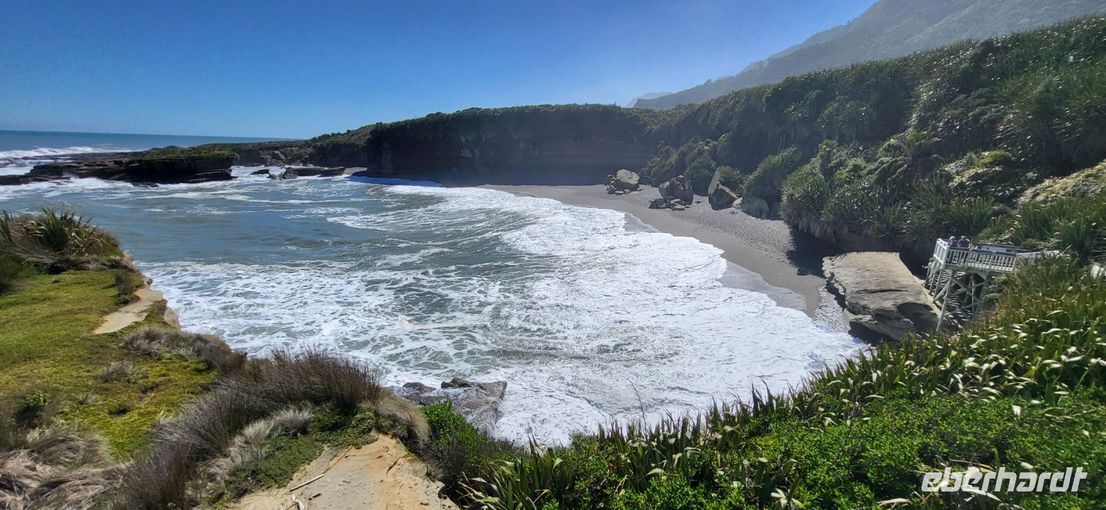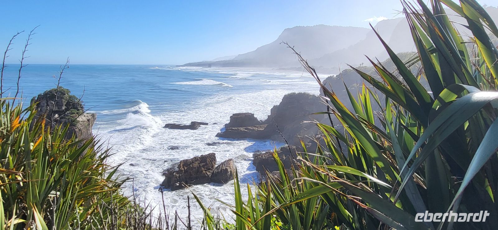Ein letzter schöner Morgen in Neuseeland beginnt damit, dass wir uns nach einem schönen Frühstück auf den Weg machen, um zu den bekannten Pancake Rocks-den sogenannten Pfannkuchenfelsen zu gelangen. Ein schöner Rundweg lässt die Fotoapparate glühen und man kann sich kaum satt sehen an dieser Laune der Natur, deren Felsen wie aufgeschichtet erscheinen, umrahmt vom tosenden Meer der Tasmanischen See. Im Anschluss geht es zum Paparoa Nationalpark, hier unternehmen wir auf dem Truman Track eine schöne Wanderung, die am Meer endet. Überall sind nun wieder die besonderen Nikaupalmen zu sehen, die wie Fächer aus dem Gebüsch herausragen. Dass hier kaum weitere Besucher sind, trägt zur besonderen Atmosphäre dieses schönen Weges bei. Auf der Aussichtsplattform angekommen, nutzen wir die Gelegenheit bei einem Gläschen neuseeländischem Weißwein auf die unglaublich schöne Reise anzustoßen und uns bei unserem liebgewonnenen Reiseleiter Roger Thomas und unserem tollen Busfahrer Mark zu bedanken, die uns grandios durch Neuseeland geführt und gefahren haben. In herrlicher Kulisse, mit Blick auf das Meer, vollem Sonnenschein, blicken wir in viele strahlende Gesichter und sind uns einig, eine einzigartige Reise erlebt zu haben. Wieder in Greymouth erfolgt dann der Check-in für die heutige Zugfahrt mit dem TranzAlpine, der uns in 4,5 Std. nach Christchurch fahren wird. Dieser verspätet sich wie immer ein bisschen und gibt es ausreichend Gelegenheit noch einen Mittagssnack in einem der umliegenden Cafés einzunehmen. Um 14.20 Uhr geht die Reise dann doch endlich los und wir genießen die landschaftlichen Eindrücke, die uns über den Arthurs Pass in 735 m Höhe führen. Da auch die neuseeländische Bahn ähnlich wie bei uns in Deutschland den Ruf genießt, selten pünktlich zu sein, so erreichen auch wir Christchurch erst am frühen Abend. Mark erwartet uns schon mit blitzblankem Bus und innerhalb weniger Fahrminuten erreichen wir unser besonders schönes Cotsworld Hotel. Ein letztes gemeinsames Abendessen im Kreis aller Gäste lässt diese unvergessliche Reise in Christchurch ausklingen.