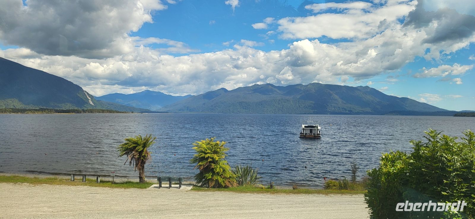 Nach einer herrlich ruhigen Nacht finden wir uns wieder zum zeitigen, gemeinsamen Frühstück ein. Währenddessen fährt uns der Kapitän zur 45 min. entfernt gelegenen Tasmanischen See. Das Wetter ist genau wie gemeldet, es regnet, stürmt und ist dabei erstaunlich mild bei ca. 16 Grad. Wir sind umgeben von grandioser Natur, die Wellen türmen sich auf und plötzlich doch beinahe wieder windstill. Würden wir immer weiter geradeaus auf das offene Meer fahren, würden wir in vier Tagen Tasmanien erreichen. Aber nein, wir kehren um und fahren 14 Km durch den bewaldeten Fjord zurück zum Festland. Beim Verlassen der Region wird uns nochmals bewusst, dass wir genau das richtige Timing und eine wunderbare Zeit hatten. In den Fjord hinein, wenn fast alle Touristen weg sind und morgens hinaus, wenn die Touristenscharen ankommen. Einfach perfekt geplant und ein Erlebnis, was niemand hätte missen wollen! Unser Mittagsstopp erfolgt nochmals in Te Anau am schönen gleichnamigen See, von wo aus es dann weiter nach Queenstown geht. Auf unserer Strecke liegt Garston, ein Nest mit nur wenigen Bewohnern, jedoch einer Imkerin, die sich auf Manukahonig spezialisiert hat und den wir natürlich auch probieren dürfen. Vorher hat uns Roger noch ausführlich die verschiedenen Stärkegrade und Geschmäcker erklärt und nun können wir alles in Ruhe testen. In Queenstown, am wunderschönen Wakatipu See gelegen, angekommen, unternehmen wir eine orientierende Stadtrundfahrt und erfahren, was wir alles noch unternehmen können. Es bietet sich für den morgigen Tag eine Auffahrt zum Bob’s Peak auf 480 m gelegen per Gondel an oder auch ein Spaziergang zum Botanischen Garten. Natürlich kann auch einfach nur gebummelt werden, jeder ganz nach seinem Geschmack. Jedenfalls gefällt es uns in diesem schönen Städtchen, welches herrlich eingebettet in traumhafter Kulisse liegt. Einige von uns werden ja einen Ausflug mit der TSS Earnslaw, einem altehrwürdigen Dampfschiff, unternehmen. Am Abend (Kaitai= Essenszeit auf Maori) genießen wir das sehr schmackhafte 3-Gänge-Menü unseres Hotels und wer mag, schlendert danach noch gemütlich durch die Stadt, die nie zu schlafen scheint.