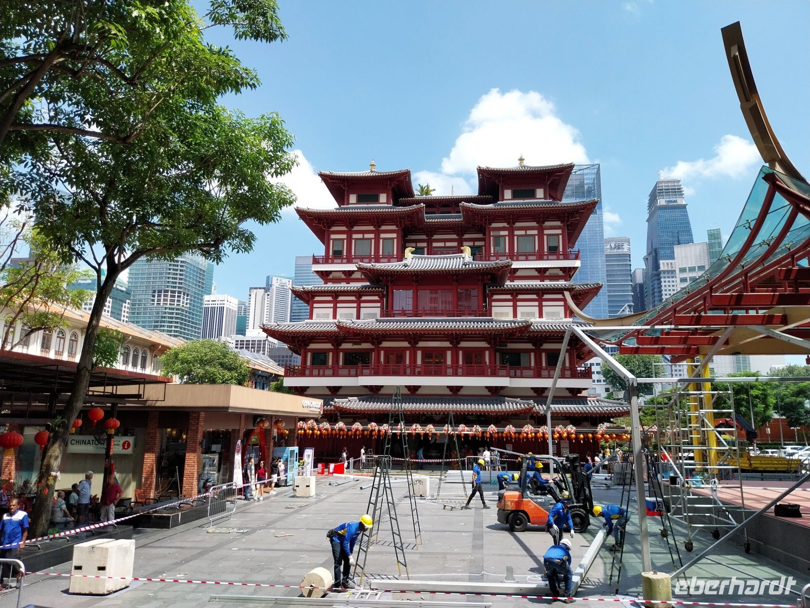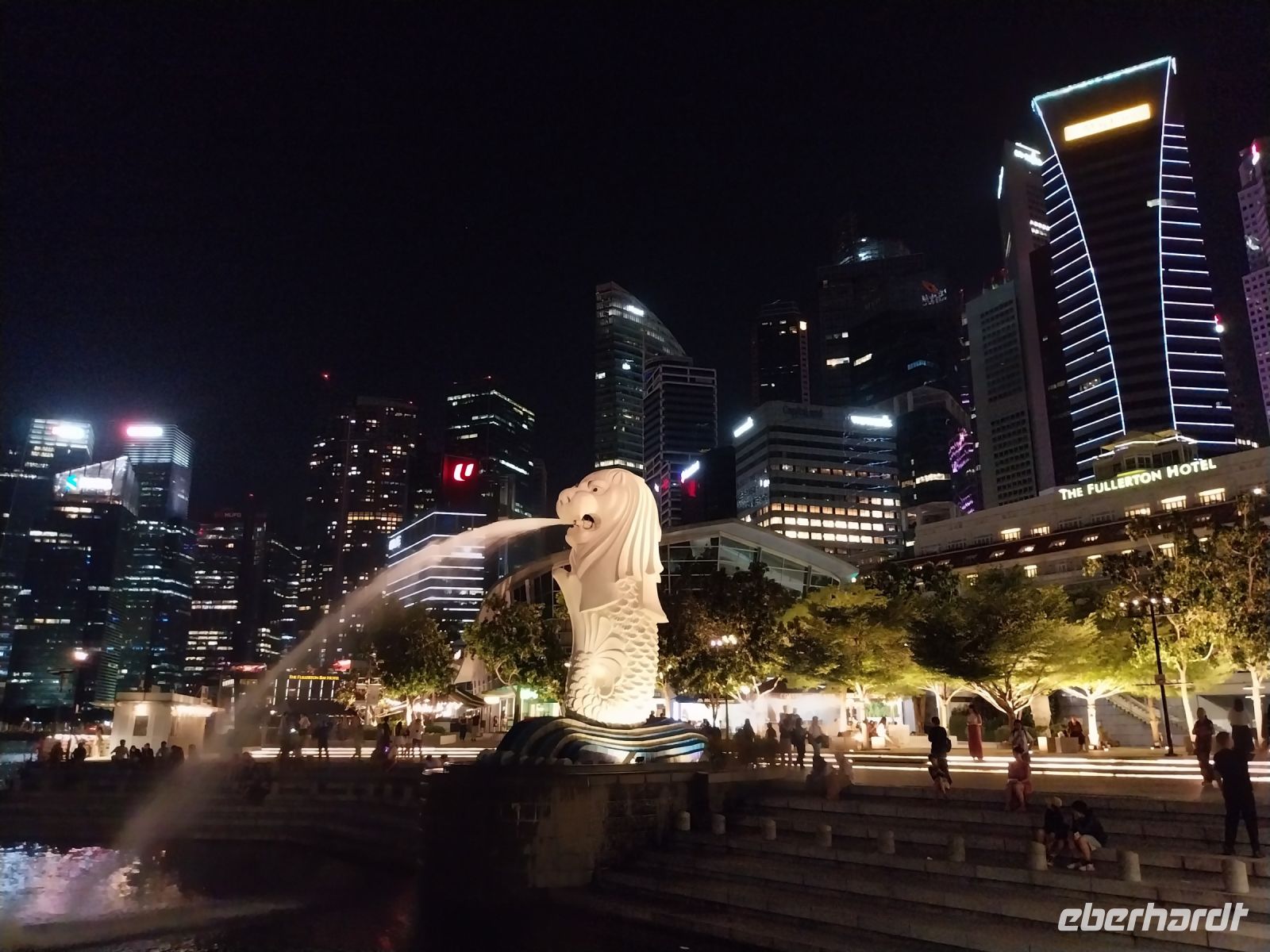 Der Merlion auf der gegenüber liegenden Seite war unser nächstes Ziel. Frisch renoviert glänzte er in der heißen Sonne. Im weiteren Verlauf besuchten wir den Taoistischen Tempel Thian Hock Keng und aßen Mittag im Chinesischen Viertel.