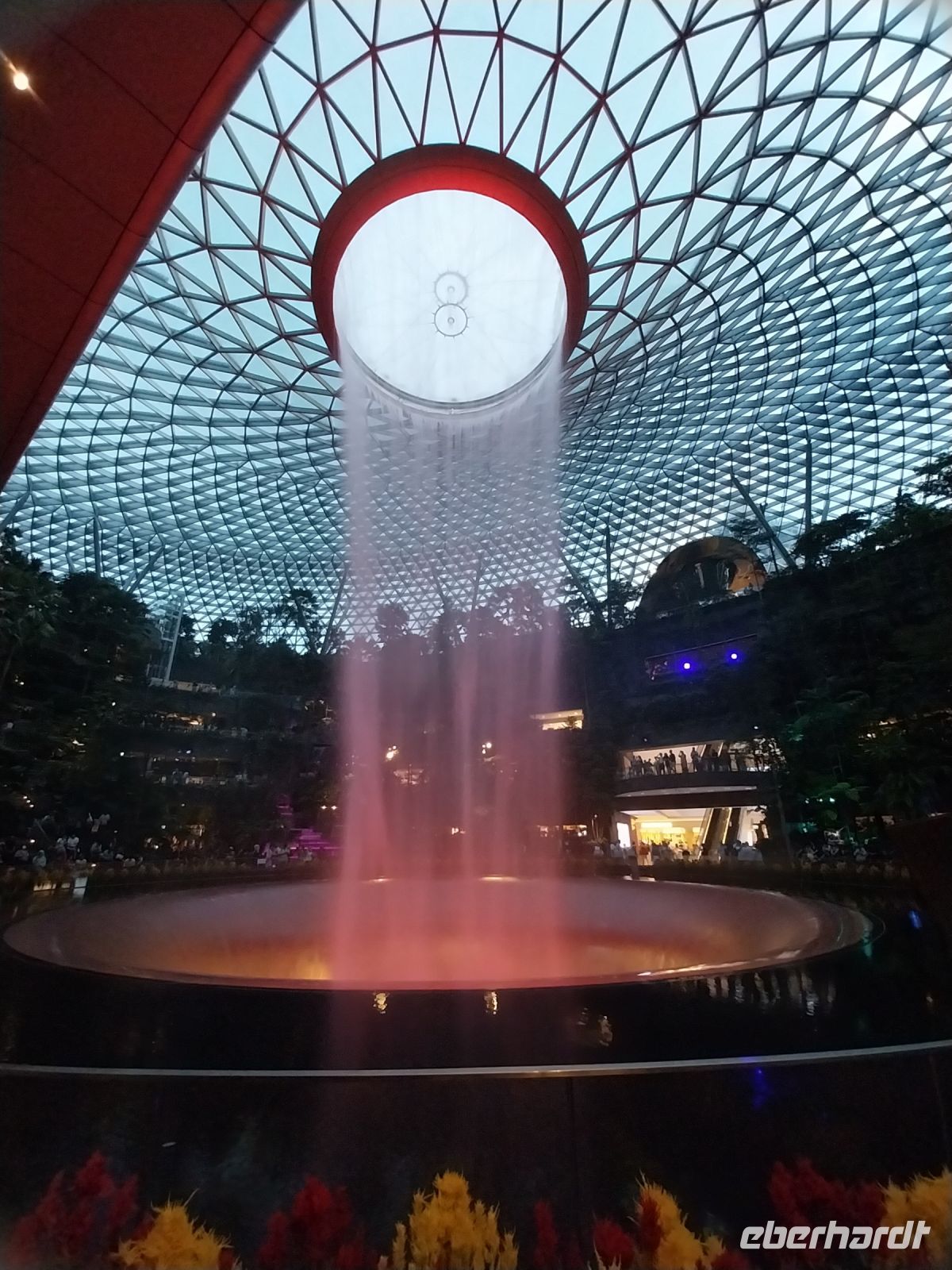 Durch Little India fuhren wir wieder zum Flughafen, checkten dort unsere Koffer ein und sahen noch den riesigen Wasserfall im The Jewel.