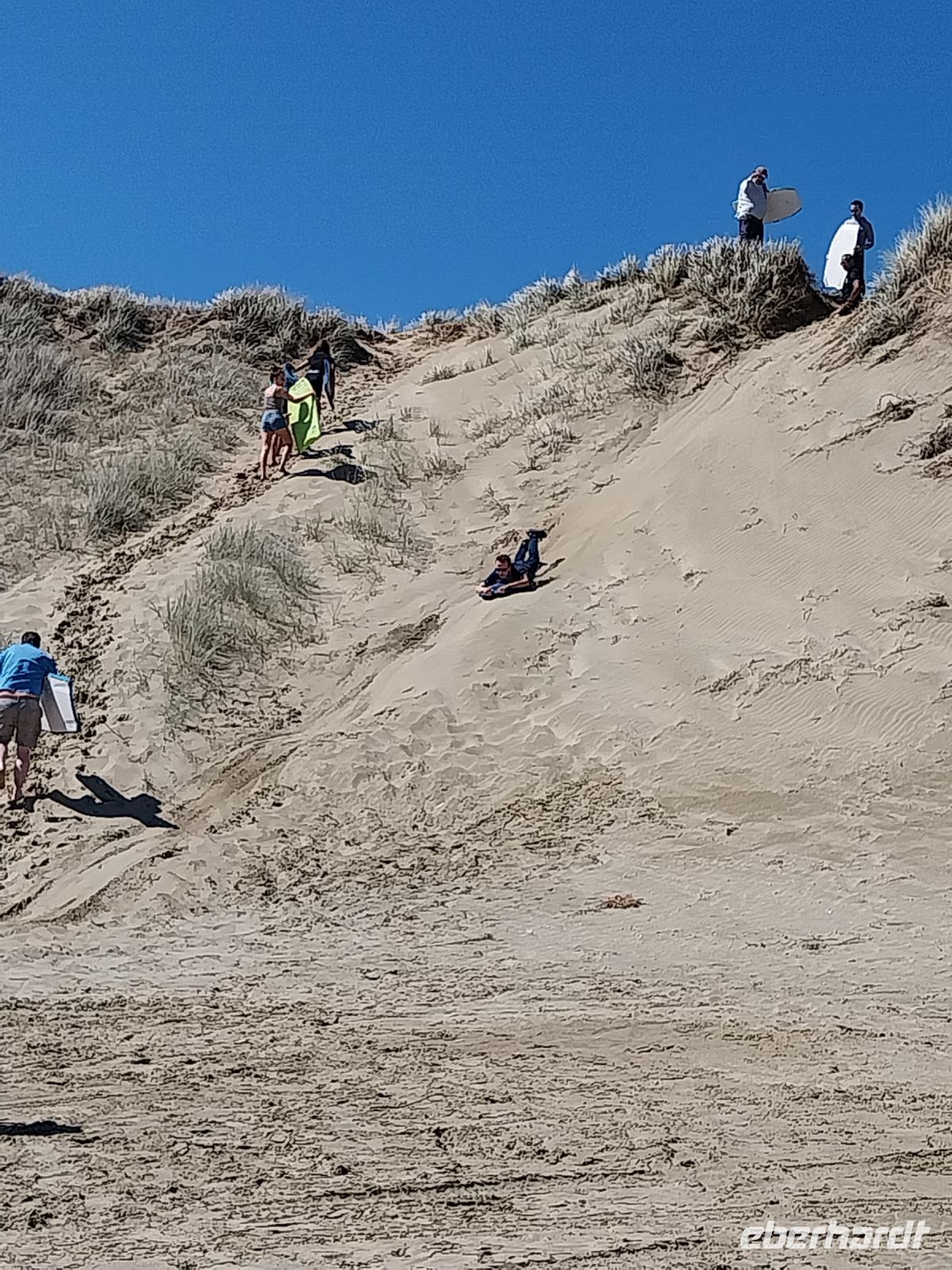 Bei herrlichem Sonnenschein erreichten wir unser Tagesziel und unternahmen einen Spaziergang zum malerisch gelegenem weißen Leuchtturm. Nach einer Mittagspause bei Pommes und Steak-Pie fuhren wir den Ninety Mile Beach entlang. Ein fast menschenleerer Strand. Unterwegs waren nur einige Angler zu sehen. Wir hielten an einer Sanddüne und konnten auf Surfbrettern den Hang hinabsausen oder einfach nur zuschauen und am Strand entlangspazieren.