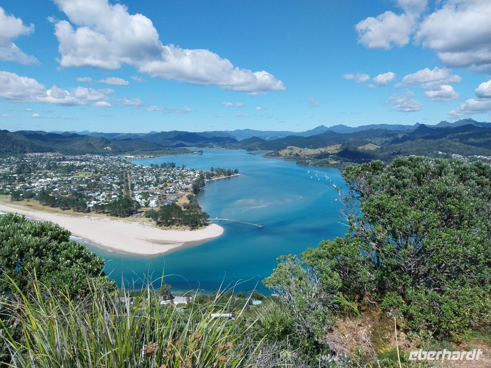 12 Uhr trafen wir uns und erkundeten die Region. Wir hielten an einem Aussichtspunkt von wo wir den Cooks Beach sahen. Anschließend brachte uns Inga zu einer Fähre, welche uns nach Whitianga übersetzte. Wir liefen durch das Örtchen und aßen oder tranken Kaffee.