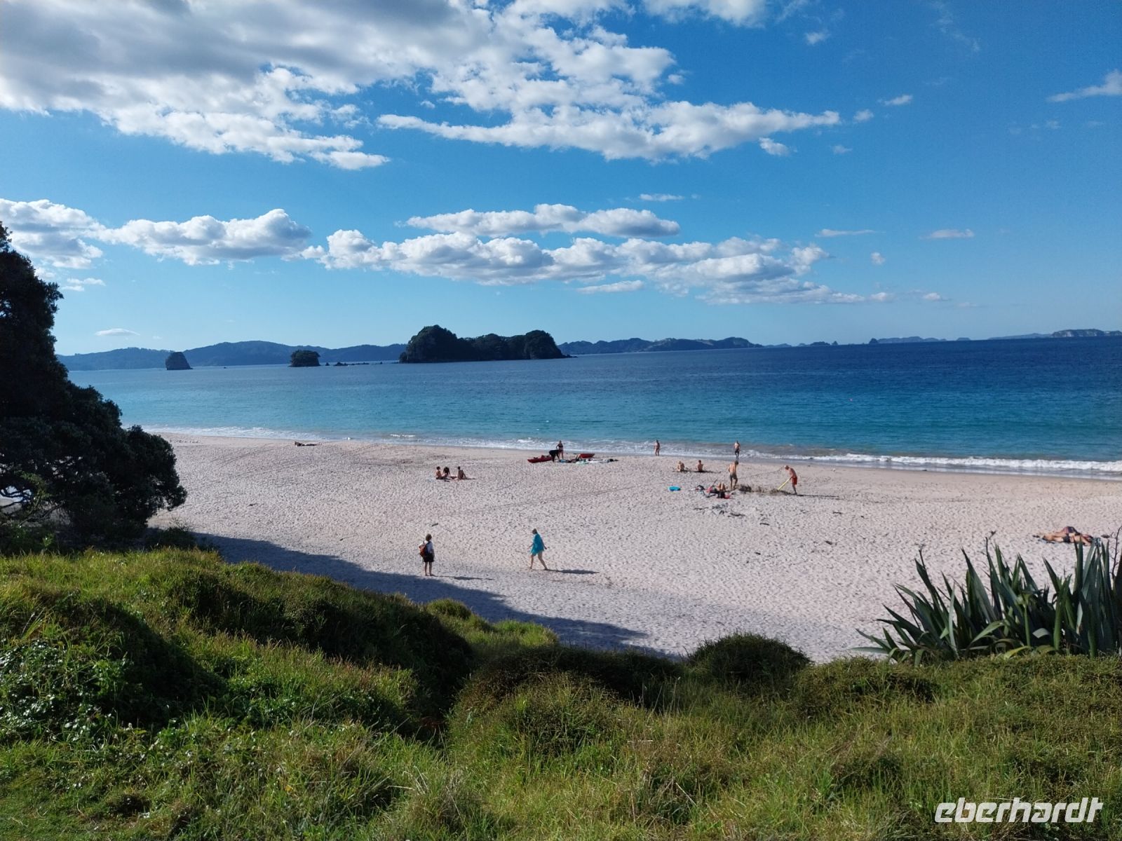 Gestärkt und mit zahlreichen Schülern, welche nun Schulschluss hatten, fuhren wir wieder zurück. Das nächste Ziel war der Hahei Beach. Bei Sonnenschein und einer Wassertemperatur von ca. 21 Grad badete ein Großteil unserer Reisegruppe im Pazifik.