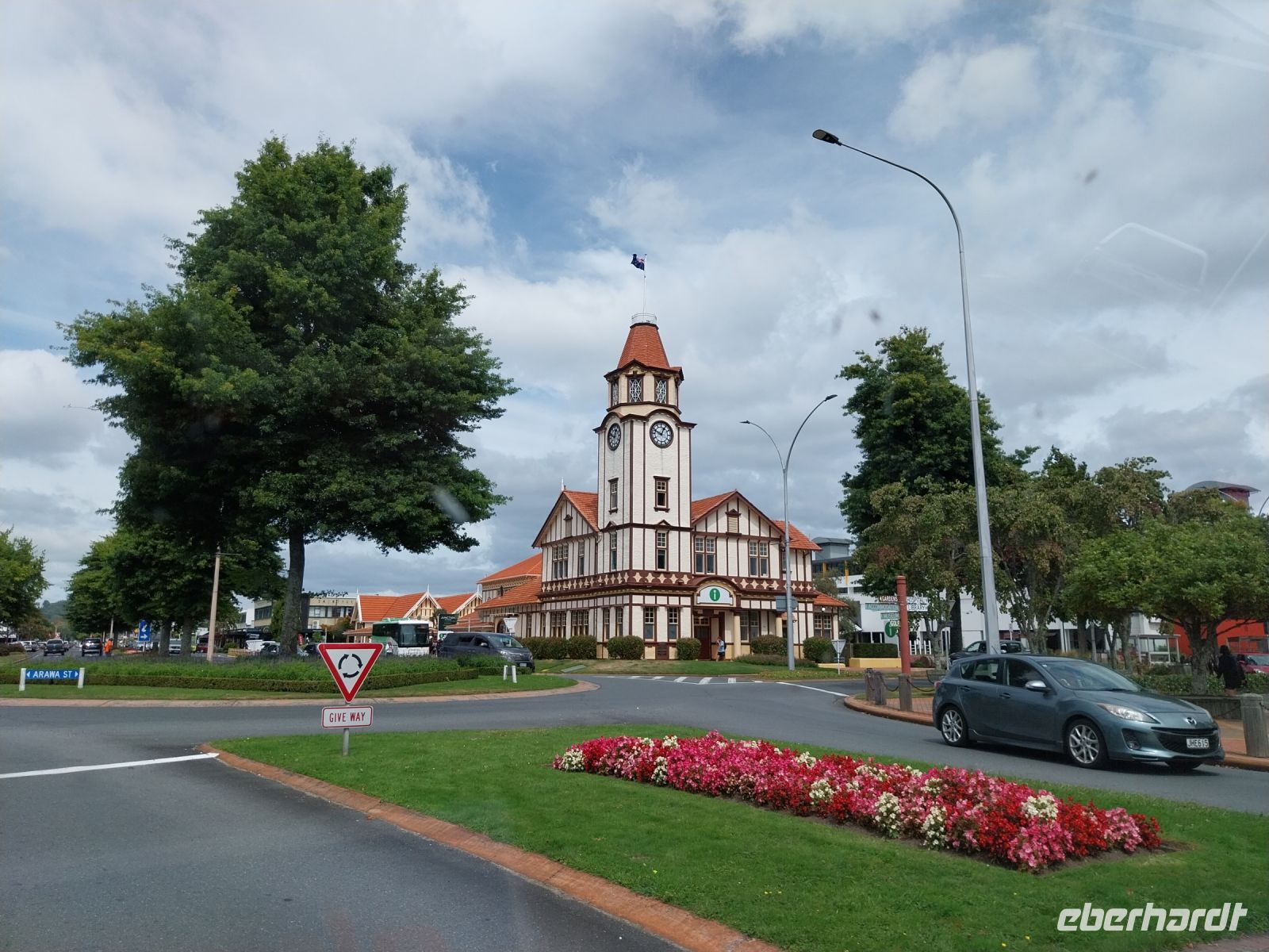 Auf der weiteren Fahrt erfuhren wir viele weitere Informationen über Land und Leute, die Kiwi-Tiere, als auch über Hobbiton. Dies ist eine Farm, welche als Filmset für die Hobbiton-Filme genutzt bzw. umgebaut wurde. 3 Gäste bekamen eine Führung während wir weiter nach Rotorua fuhren und die Kiwi Hatchery besuchten. Es ist das größte und erfolgreichste Kiwi-Schlupf- und Aufzuchtzentrum der Welt. Wir erhielten zahlreiche Erklärungen, sahen zwei Kiwis in einem dunklen Raum und besuchten anschließend das Aufzuchtzentrum. Hier werden die Eier, welche im Wald von den Kiwi-Männchen nach mindestens 40 Tagen weggenommen werden, fertig ausgebrütet, um die Überlebenschancen der Tiere zu erhöhen.