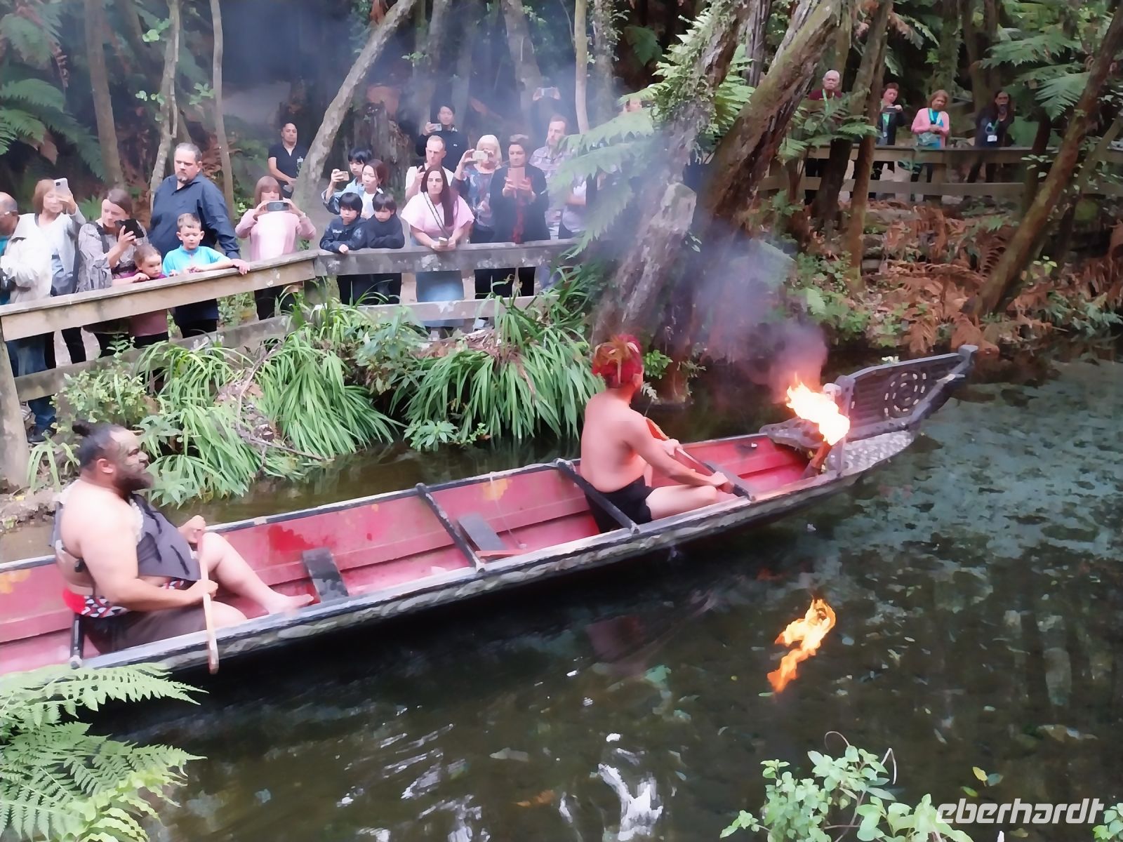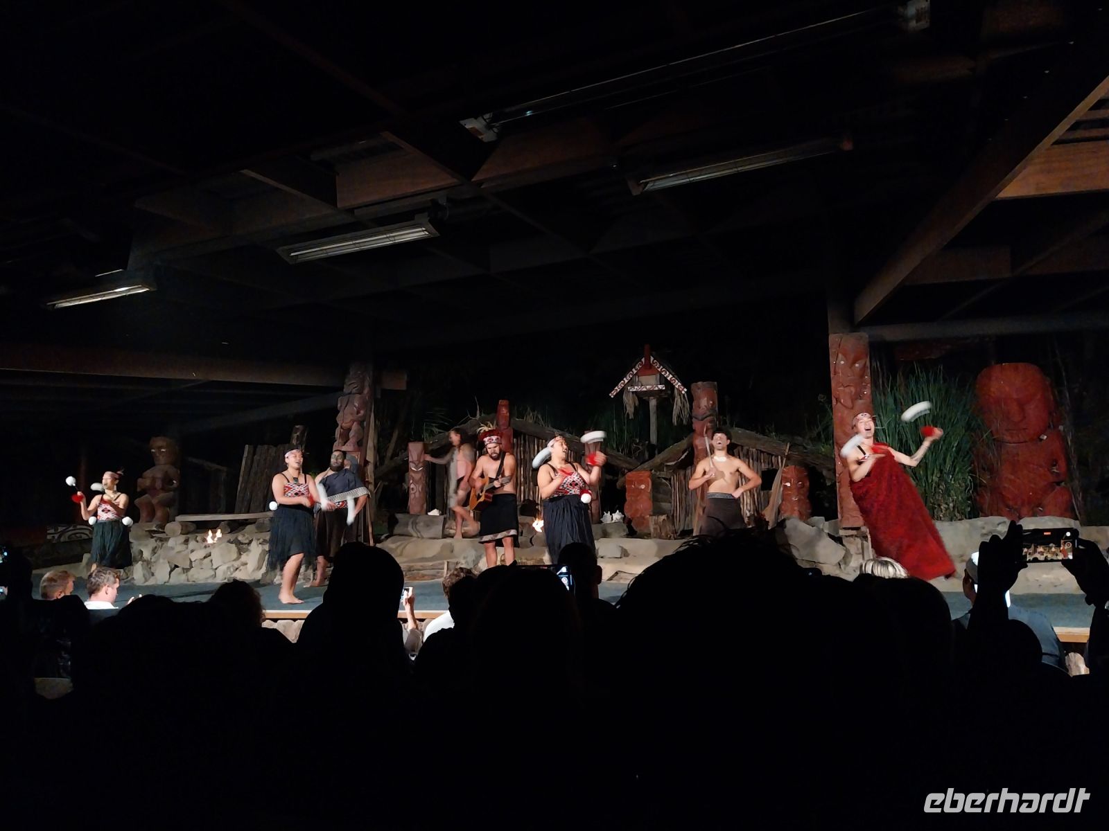 Am Abend besuchten wir noch ein Hangi-Abendessen mit Konzert. Der Maori-Stamm der Mitai zeigte ihren Haka, sang und tanzte stimmungsvoll.