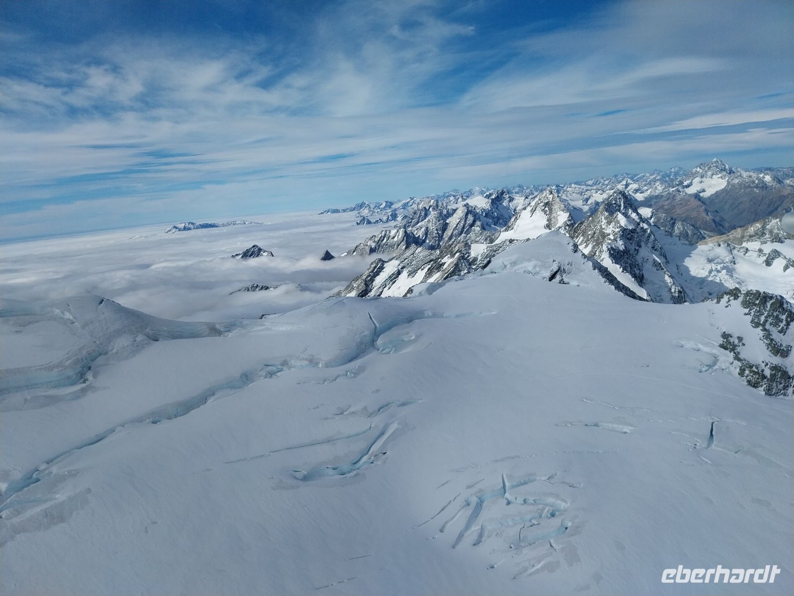 Es schien die Sonne und wir hatten einen herrlichen Ausblick auf die zahlreichen 3000er. So sahen wir mit dem Mount Cook und dem Mount Tasman die zwei höchsten Berge Neuseelands.