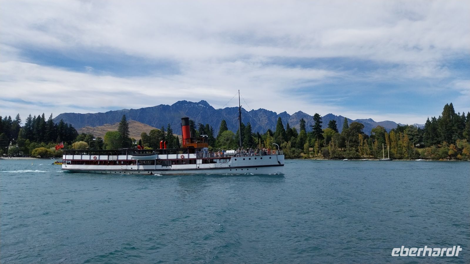 Heute hatte unser Driverguide Roger seinen freien Tag. Auch wir konnten den Tag entspannt angehen und unternahmen unterschiedliche Aktivitäten, z. B. eine Fahrt mit dem Speedboot, per Seilbahn auf den Bob's Peak, einen Spaziergang durch den Botanischen Garten oder mit dem alten kohlebetriebenen Dampfschiff TSS Earnslaw zu einer Farm. Alle genossen den freien Tag und den herrlichen Sonnenschein.