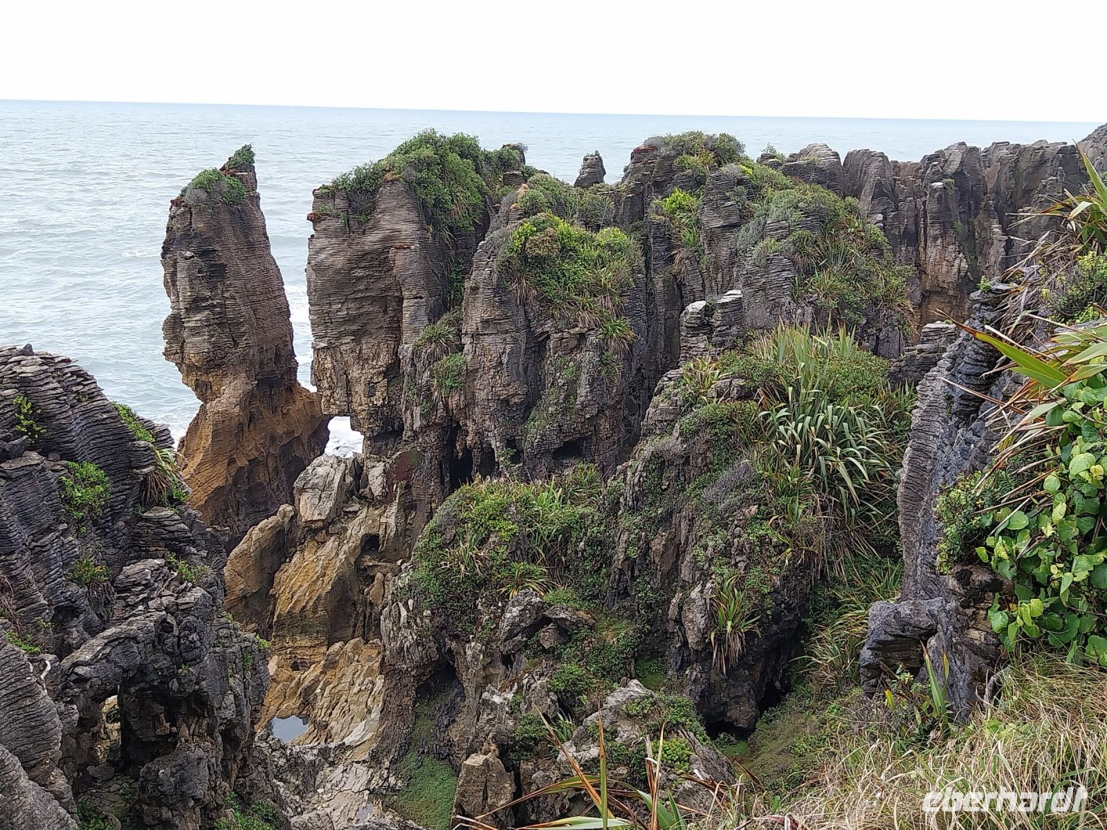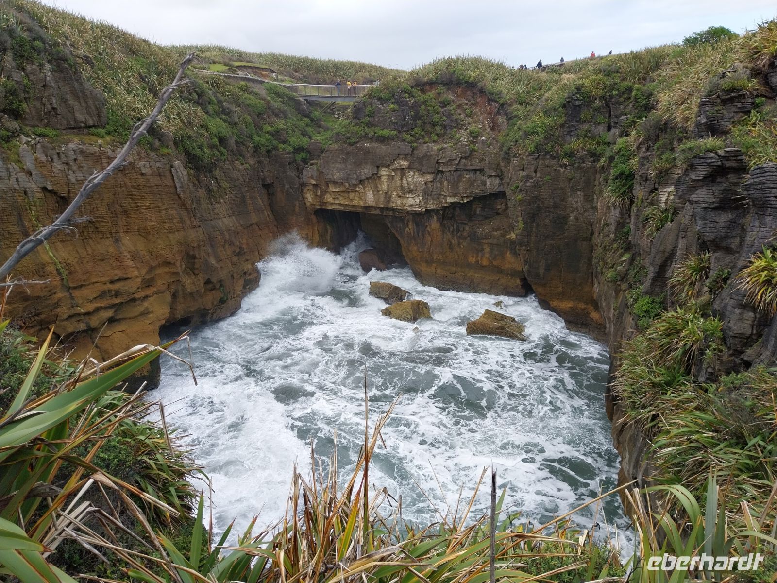 Erstes Ziel waren die Pancake Rocks, eine Felsformation in Meeresnähe, welche wie übereinander liegende Pfann- bzw. Eierkuchen aussehen.