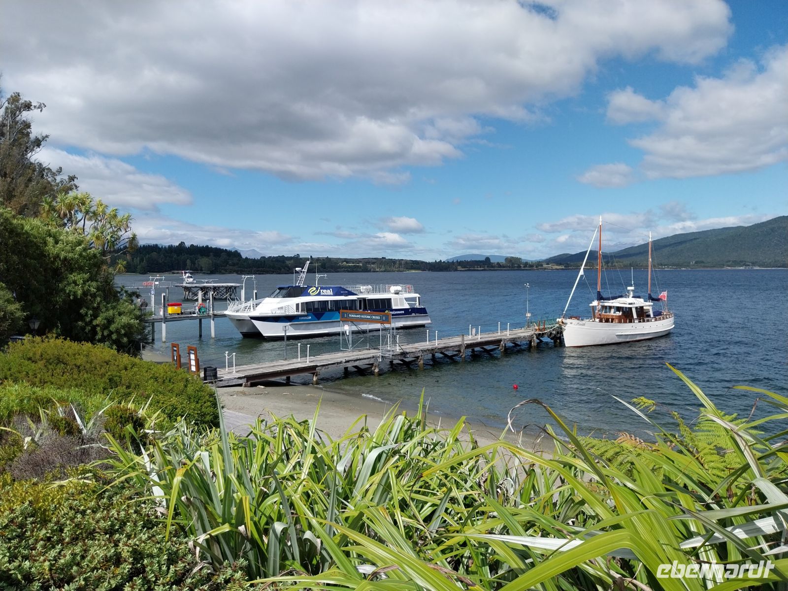 Unsere Reise führte uns weiter in südlicher Richtung über die Huka Falls zum größten See Neuseelands, dem Taupo See. Im Uferstädtchen verbrachten wir unsere Mittagspause.