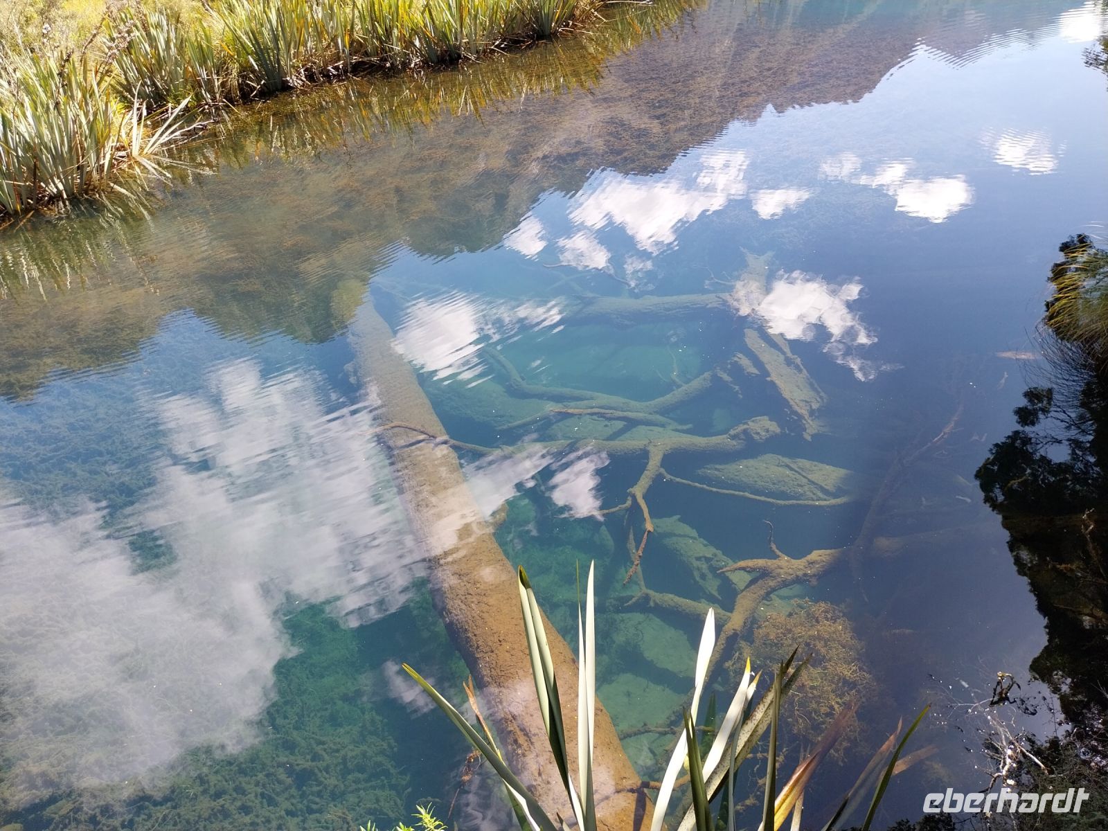 Aufgrund des tollen Wetters hielten wir auf dem Weg nach Te Anau für zahlreiche Fotostopps und schauten auch einer Komoranfamilie mit drei Jungen zu.