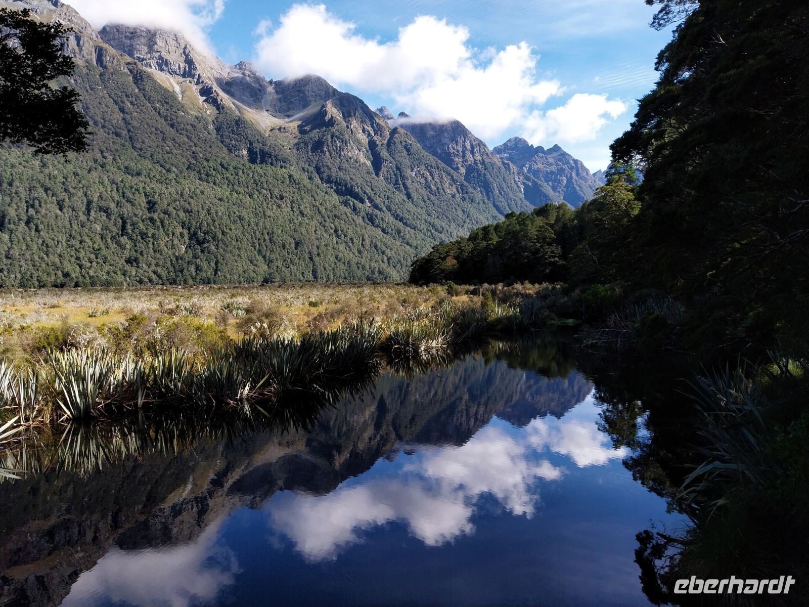 Wir erreichten mit 46° südlicher Breite unseren südlichsten Punkt der Reise und fuhren über den Presidential Highway durch Clinton und Gore. Am frühen Nachmittag erreichten wir den Fjordland Nationalpark.