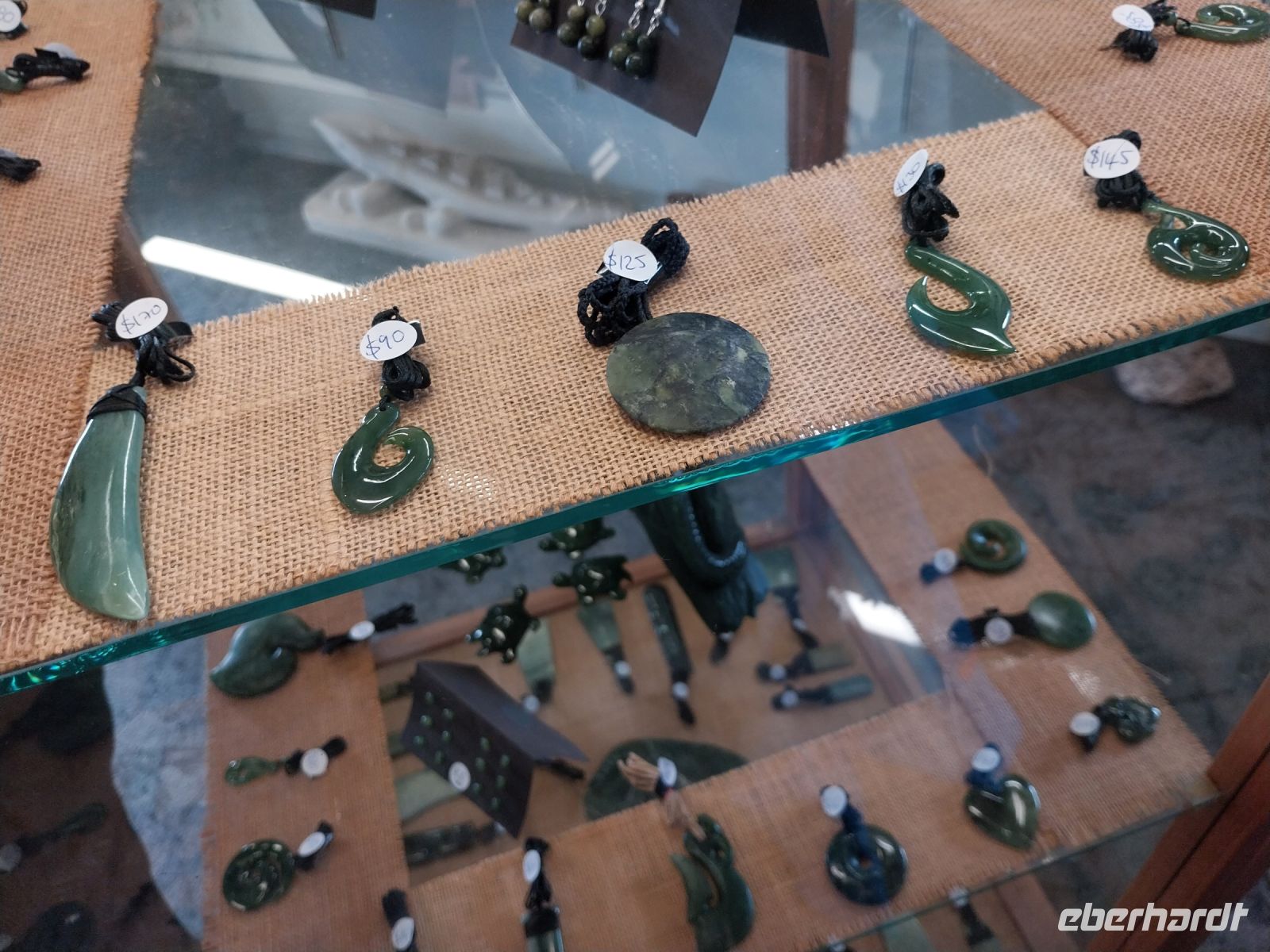 Unsere Reise führte uns über kleine Ortschaften nach Hokitika, wo wir eine längere Pause für einlegten. Wir kauften die letzten Souvenirs z. B. in einer Jademanufaktur oder Glasbläserei.
