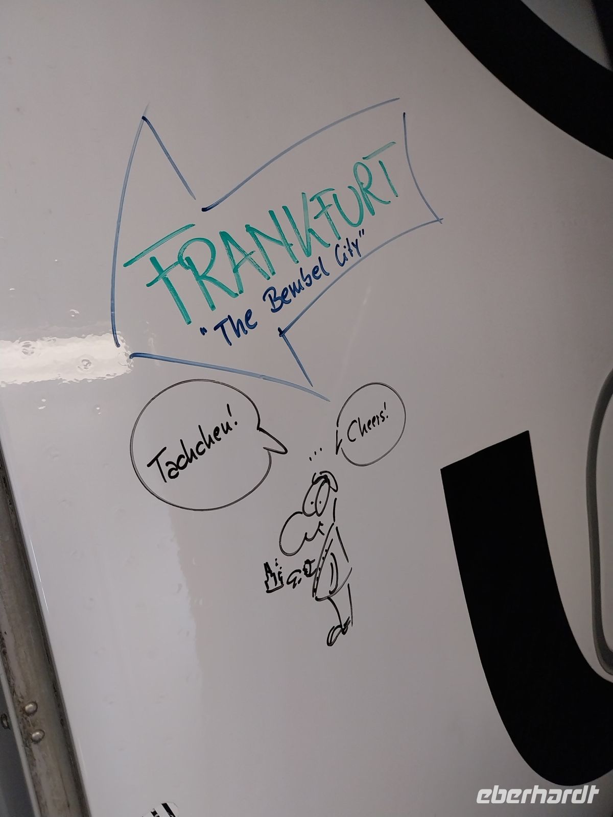 Pünktlich erreichten wir Frankfurt. Wir verabschiedeten uns von einem weiteren Gast und flogen anschließend weiter nach Dresden. Am Ausgang erwarteten uns die streikenden Mitarbeiter. Glücklicherweise waren nicht alle dem Aufruf gefolgt, so dass auch unsere Rückreise störungsfrei verlief.