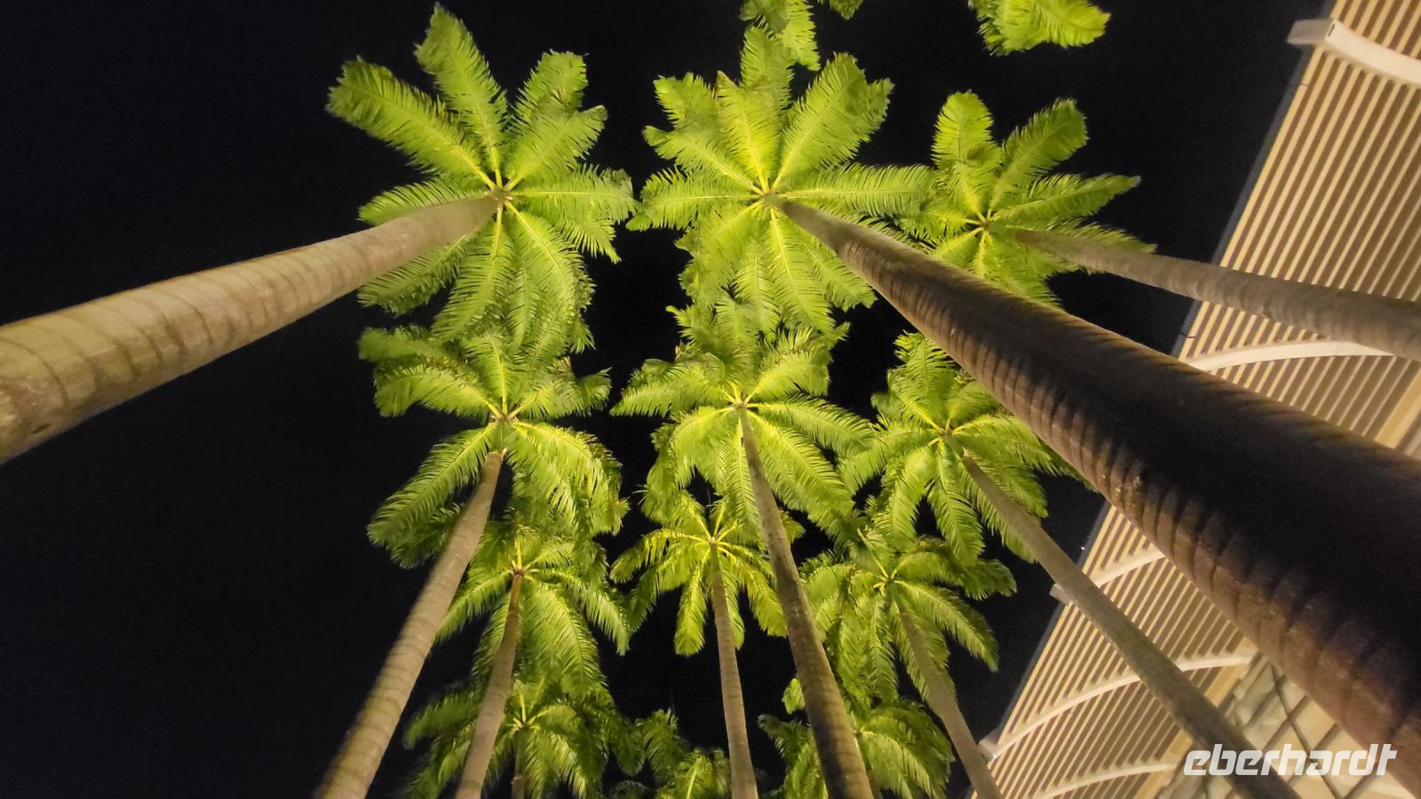 Im Anschluss besuchen wir die berühmten „Supertrees“ in den Gardens by the Bay. Diese faszinierenden, pflanzenbewachsenen Stahlkonstruktionen ragen 25 bis 50 Meter hoch in den Himmel und sind nicht nur ein botanisches Wunderwerk, sondern auch ein technisches Meisterstück. Jeden Abend findet hier die „Garden Rhapsody“-Lichtshow statt, bei der die Supertrees synchron zu klassischer Musik, dieses Mal zu einem Walzer, illuminiert werden. Viele Zuschauer sitzen oder liegen auf dem Boden, um die Show in ihrer vollen Pracht genießen zu können – ein magisches Erlebnis, das uns alle staunen lässt.