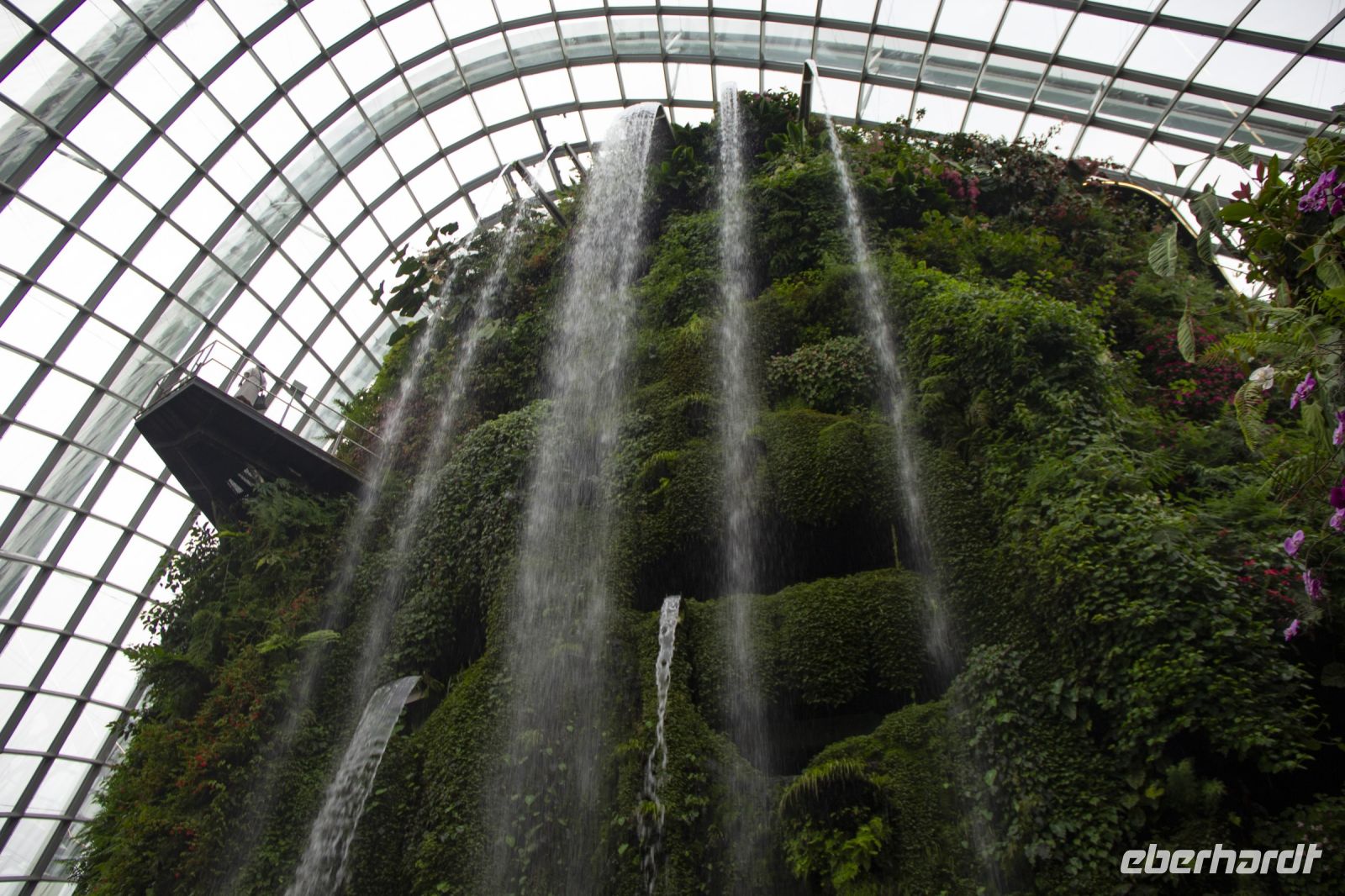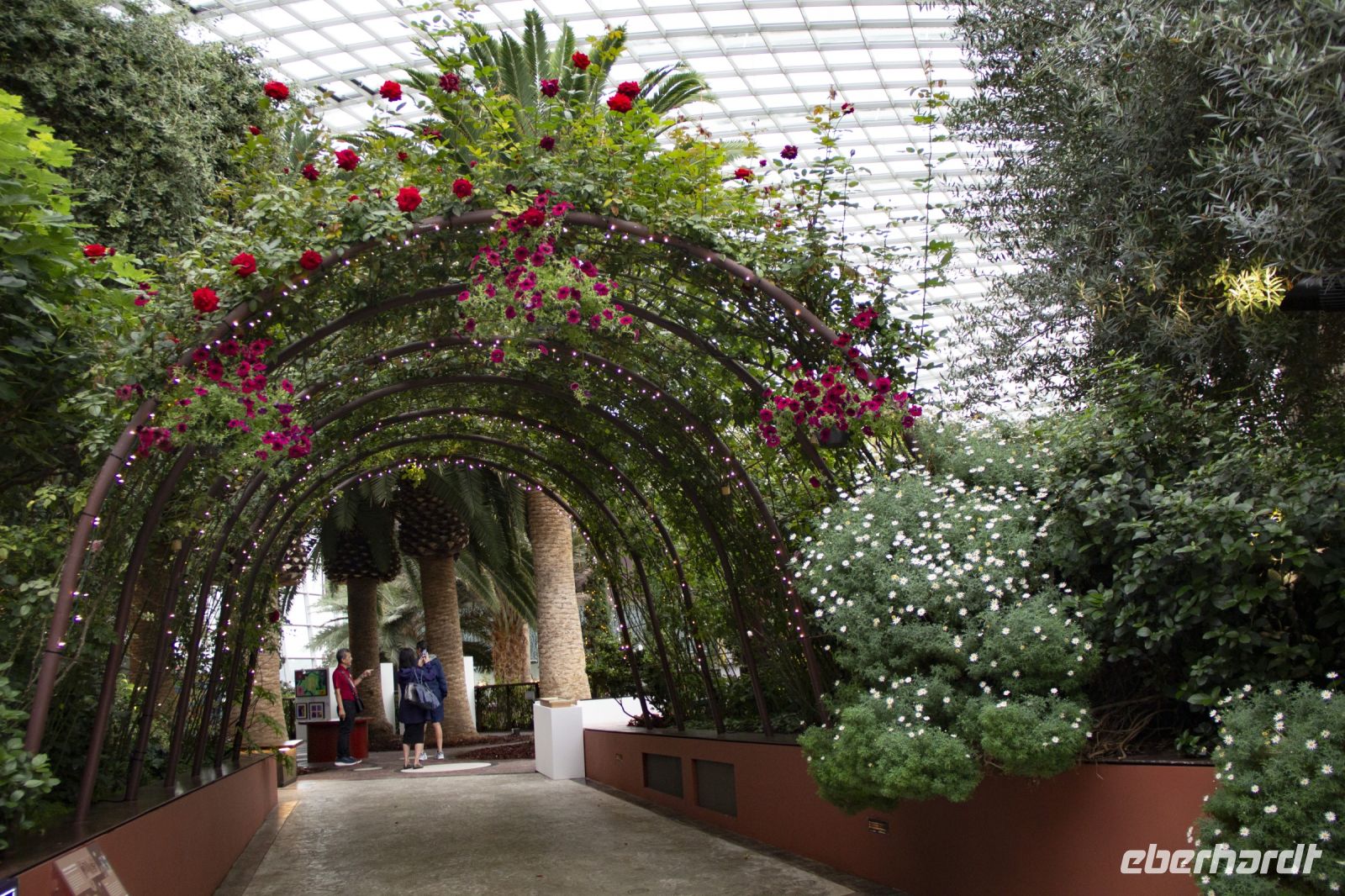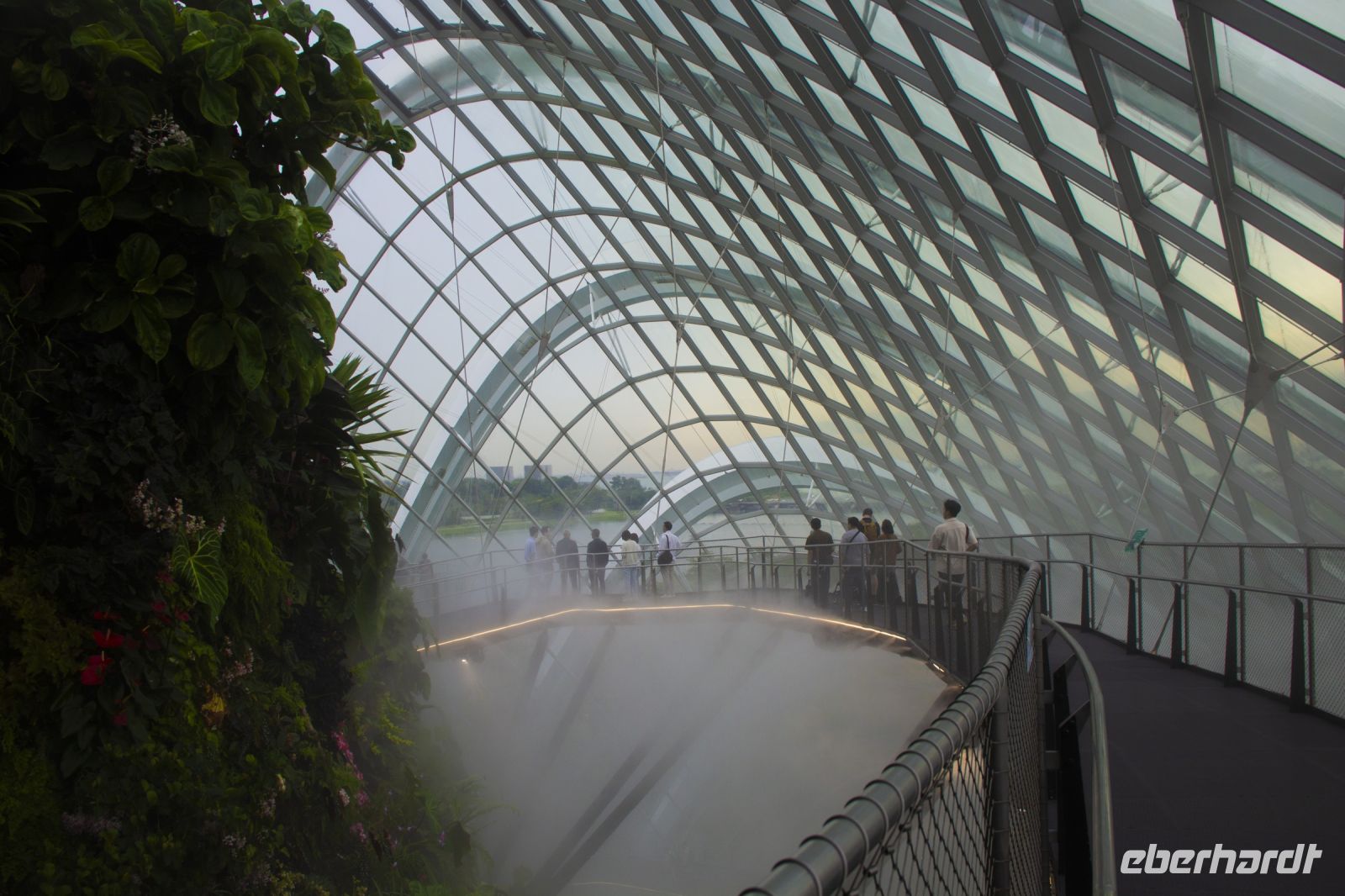 Die Hauptattraktionen der Gardens by the Bay sind der Flower Dome und der Cloud Forest, zwei beeindruckende Glashäuser. Im Flower Dome wird ein mildes, trockenes Klima simuliert, das ideale Bedingungen für mediterrane Pflanzen und Blumen bietet. Hier leuchten die Blumen in den schönsten Farben – ein Fest für die Sinne. Der Cloud Forest hingegen ist eine tropische Oase mit hoher Luftfeuchtigkeit. In dieser Umgebung gedeihen faszinierende Pflanzen wie Orchideen, Bromelien und Flamingoblumen. Besonders beeindruckend ist der künstliche Wasserfall, der mit einer Höhe von über 30 Metern das Herzstück des Cloud Forest bildet. Nachdem wir beide Glashäuser ausführlich erkundet haben, kehren wir ins Hotel zurück, um auszuchecken.