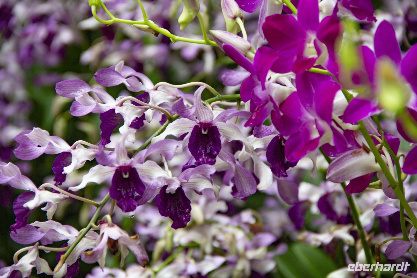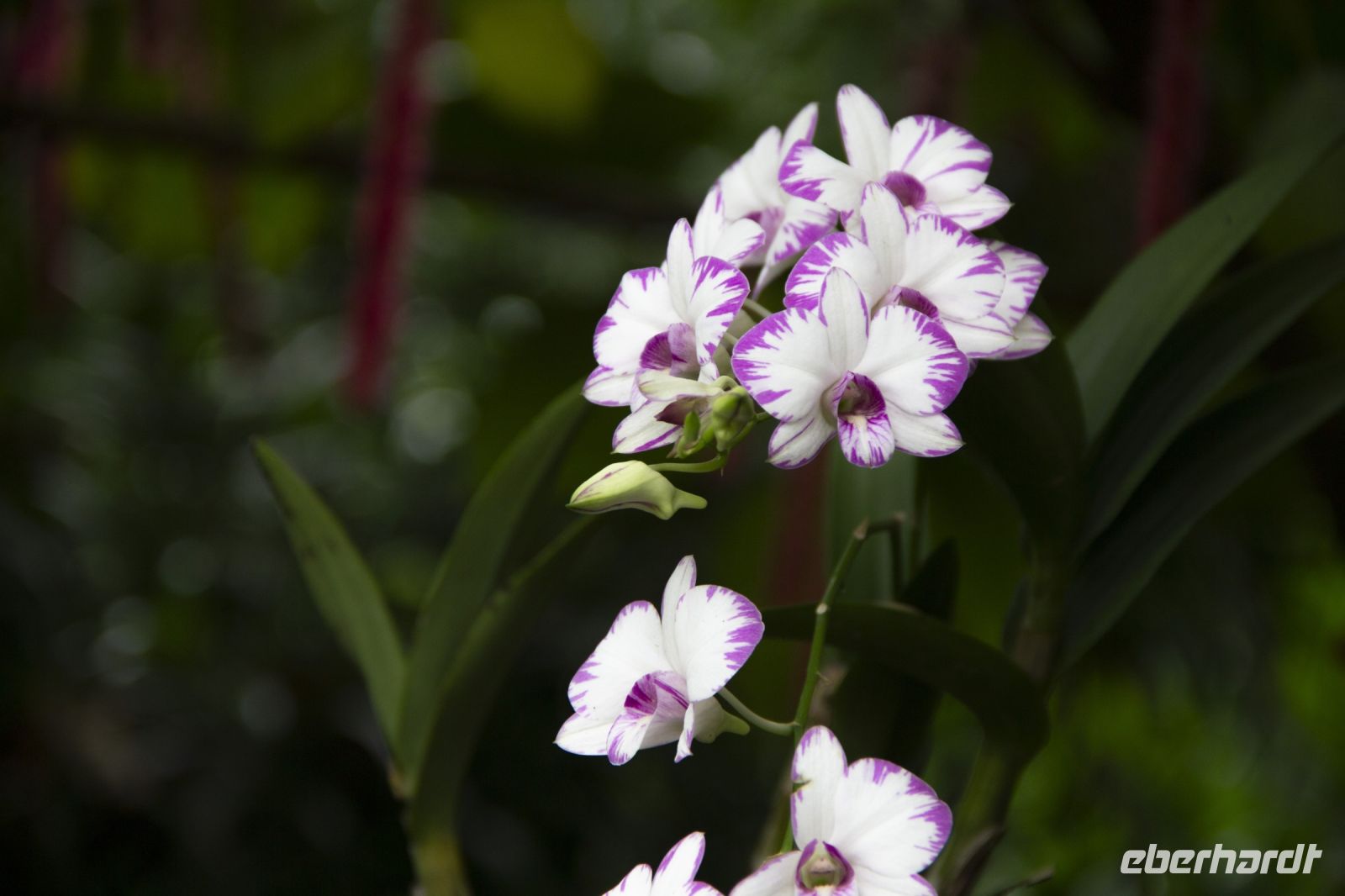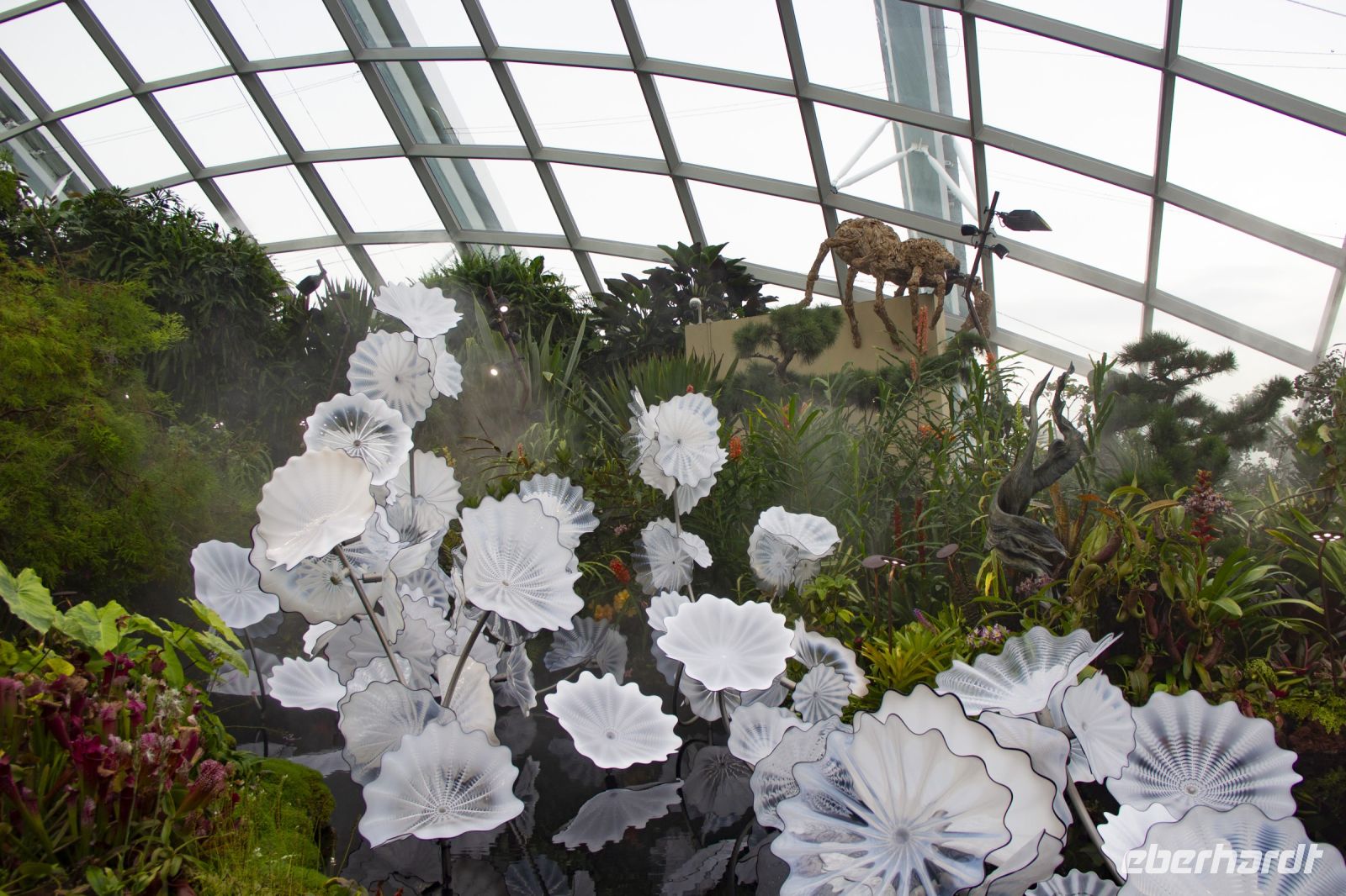 Die Hauptattraktionen der Gardens by the Bay sind der Flower Dome und der Cloud Forest, zwei beeindruckende Glashäuser. Im Flower Dome wird ein mildes, trockenes Klima simuliert, das ideale Bedingungen für mediterrane Pflanzen und Blumen bietet. Hier leuchten die Blumen in den schönsten Farben – ein Fest für die Sinne. Der Cloud Forest hingegen ist eine tropische Oase mit hoher Luftfeuchtigkeit. In dieser Umgebung gedeihen faszinierende Pflanzen wie Orchideen, Bromelien und Flamingoblumen. Besonders beeindruckend ist der künstliche Wasserfall, der mit einer Höhe von über 30 Metern das Herzstück des Cloud Forest bildet. Nachdem wir beide Glashäuser ausführlich erkundet haben, kehren wir ins Hotel zurück, um auszuchecken.