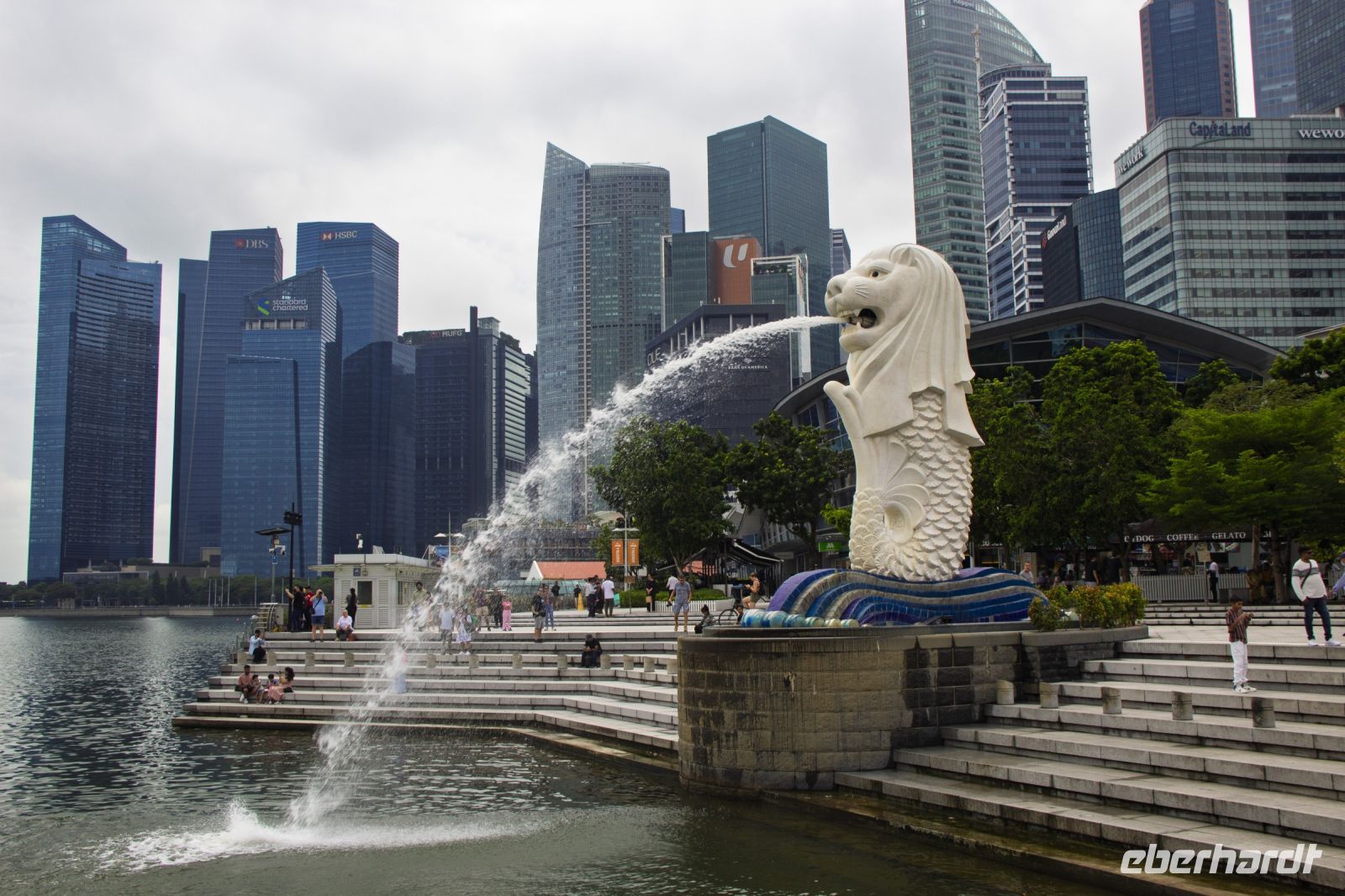 Kurz darauf holt uns Helena zur Stadtrundfahrt ab. Während der Fahrt teilt sie viele spannende Details über das Leben in Singapur und die Geschichte der Stadt. Unser erster Fotostopp führt uns zum Parlament und zum berühmten Merlion. Der Merlion, das Wahrzeichen Singapurs, ist eine einzigartige Statue mit einem Löwenkopf und einem Fischkörper, die den Ursprung Singapurs als Fischerdorf und seine heutige Stärke symbolisiert.