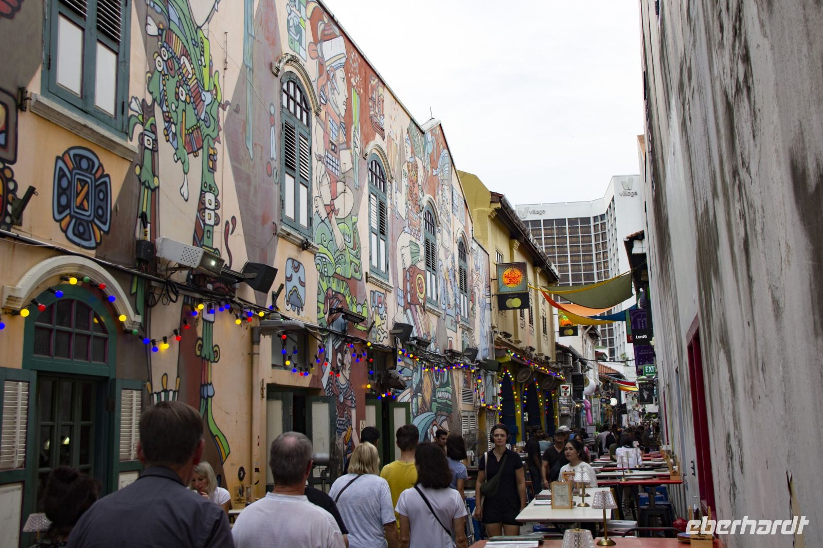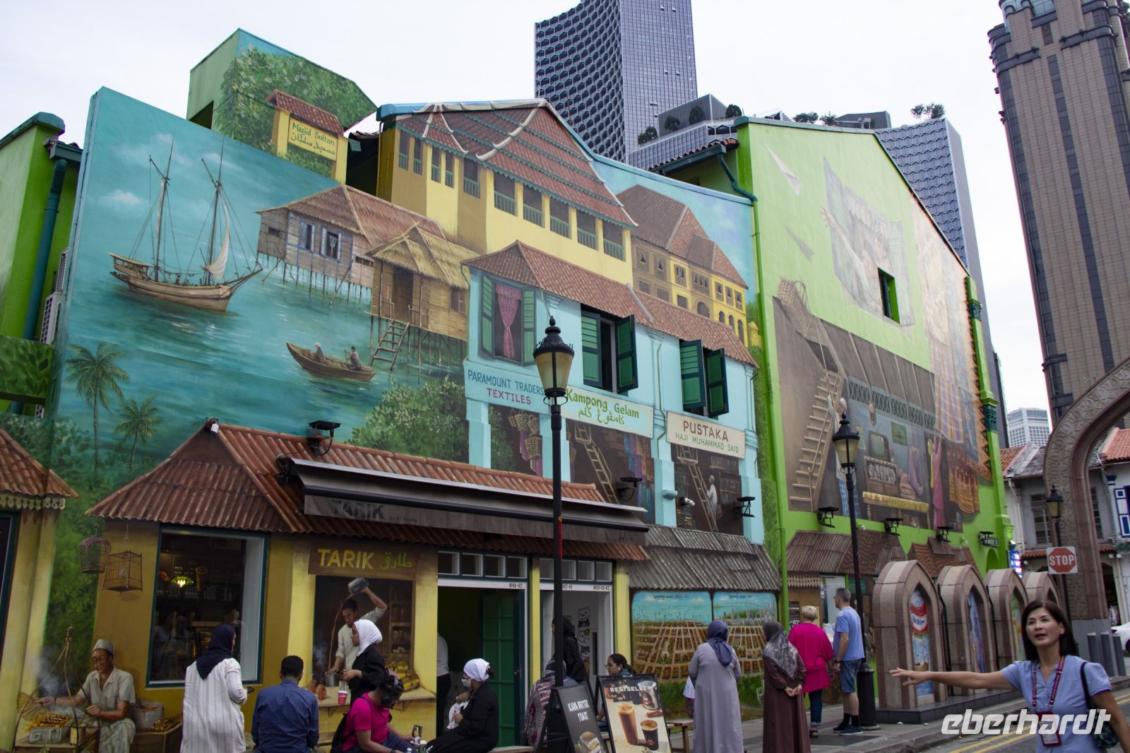 Gestärkt setzen wir unsere Tour im indischen Viertel, Little India, fort. Bei einem kleinen Spaziergang erkunden wir die bunten Märkte, auf denen exotisches Obst, Gemüse und Gewürze verkauft werden. Helena erklärt uns viel über die kulturellen Besonderheiten und die angebotenen Waren. Anschließend besuchen wir das Arabische Viertel mit seiner beeindruckenden Sultan-Moschee und den farbenfrohen Wandmalereien, die den Charme des Viertels unterstreichen.