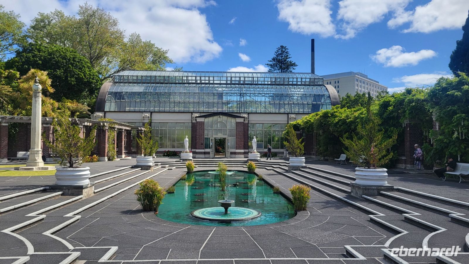 Direkt im Anschluss starten wir zu einer kurzen Orientierungsfahrt, um die Stadt kennenzulernen. Unser erster Stopp ist der Auckland Domain Wintergarten, ein botanisches Juwel inmitten des ältesten Parks der Stadt. Hier bewundern wir die farbenfrohen Blumen, tropischen Pflanzen und die beeindruckenden Baumfarne, die typisch für Neuseeland sind. Der Wintergarten besteht aus zwei wunderschönen Glashäusern, die jeweils unterschiedliche Klimazonen nachstellen und eine vielfältige Pflanzenwelt präsentieren.
