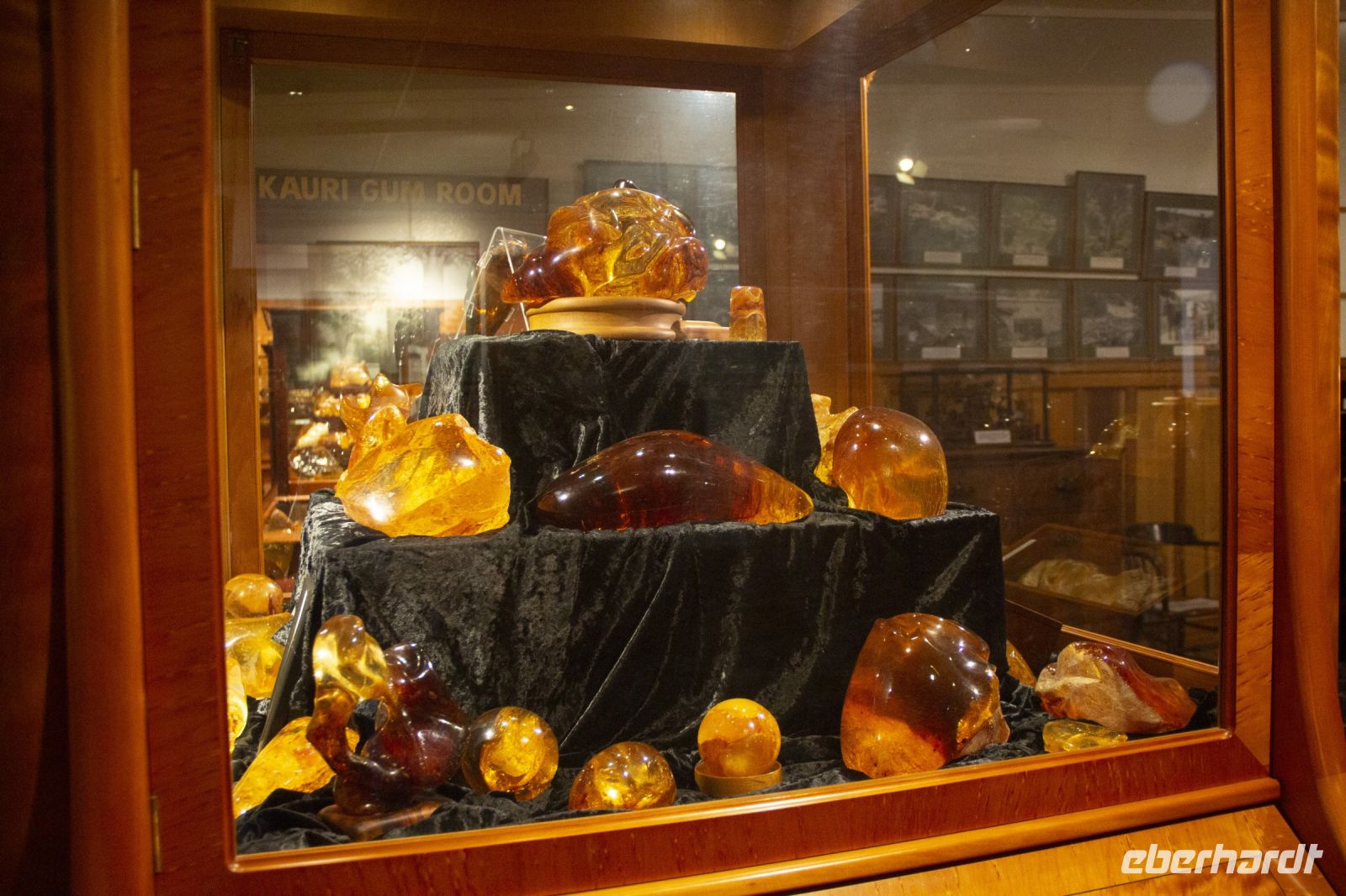 Am Nachmittag erreichen wir das Kauri Museum in Matakohe, ein Muss für alle, die mehr über die Geschichte und Bedeutung der Kauri-Bäume erfahren möchten. Das Museum bietet faszinierende Einblicke in die vielfältigen Nutzungsmöglichkeiten des Kauri-Holzes, das für Möbel, Schiffe und Kunsthandwerk verwendet wurde. Ebenso beeindruckend ist die Ausstellung über Kauri-Harz, das früher als „Gold des Waldes“ galt und vielseitig genutzt wurde.