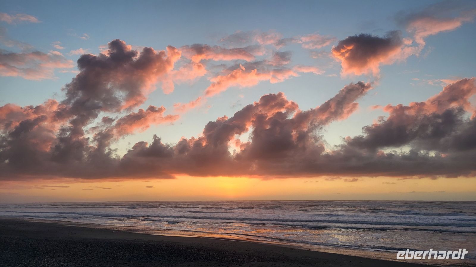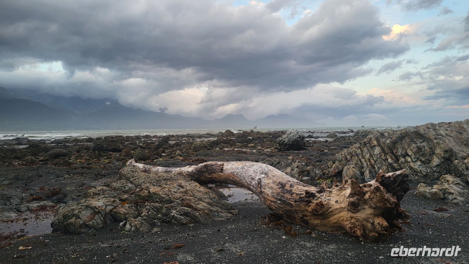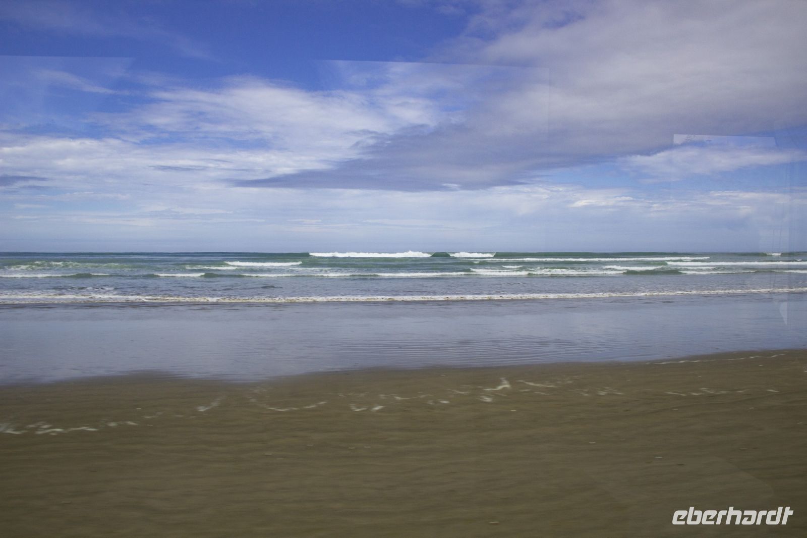 Am späten Nachmittag erreichen wir Greymouth, unseren Zielort. Bevor wir ins Hotel fahren, machen wir einen kurzen Abstecher zur Küste. Die Tasmanische See, eines der rauesten und unberechenbarsten Gewässer der Welt, zeigt auch heute ihre kraftvolle Seite mit tosendem Wellengang. Die gewaltige Energie des Meeres ist beeindruckend und gibt uns einen Einblick in die wilde Natur der Westküste.