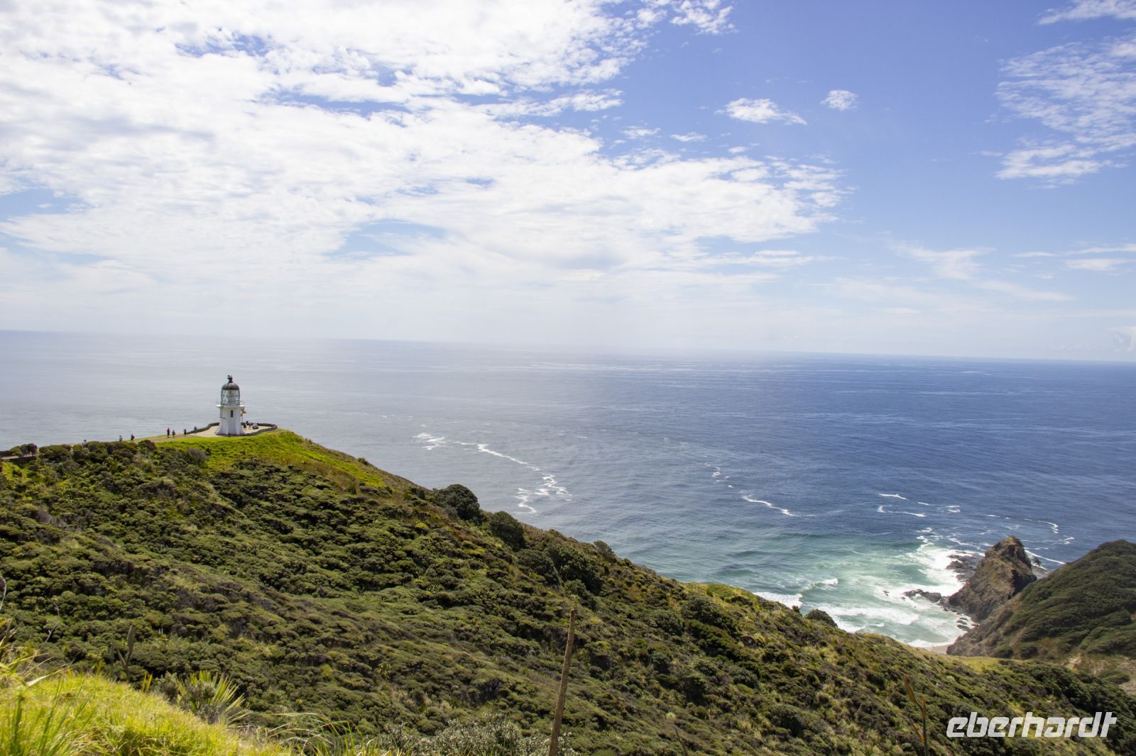 Unsere Reise führt uns weiter zum Cape Reinga, einem der heiligsten Orte für die Maori. Hier treffen die Tasmanische See und der Pazifische Ozean aufeinander, und die unterschiedlichen Strömungen schaffen ein spektakuläres Naturschauspiel. Die Maori-Legenden erzählen, dass dieser Ort der Startpunkt für die letzte Reise der Seelen der Verstorbenen ist. Von hier springen die Seelen ins Meer und machen sich auf den Weg nach Hawaiki, dem sagenumwobenen Heimatland ihrer Ahnen. Der Leuchtturm am Kap und die atemberaubende Aussicht über die unberührte Landschaft machen diesen Ort zu einem unvergesslichen Erlebnis.