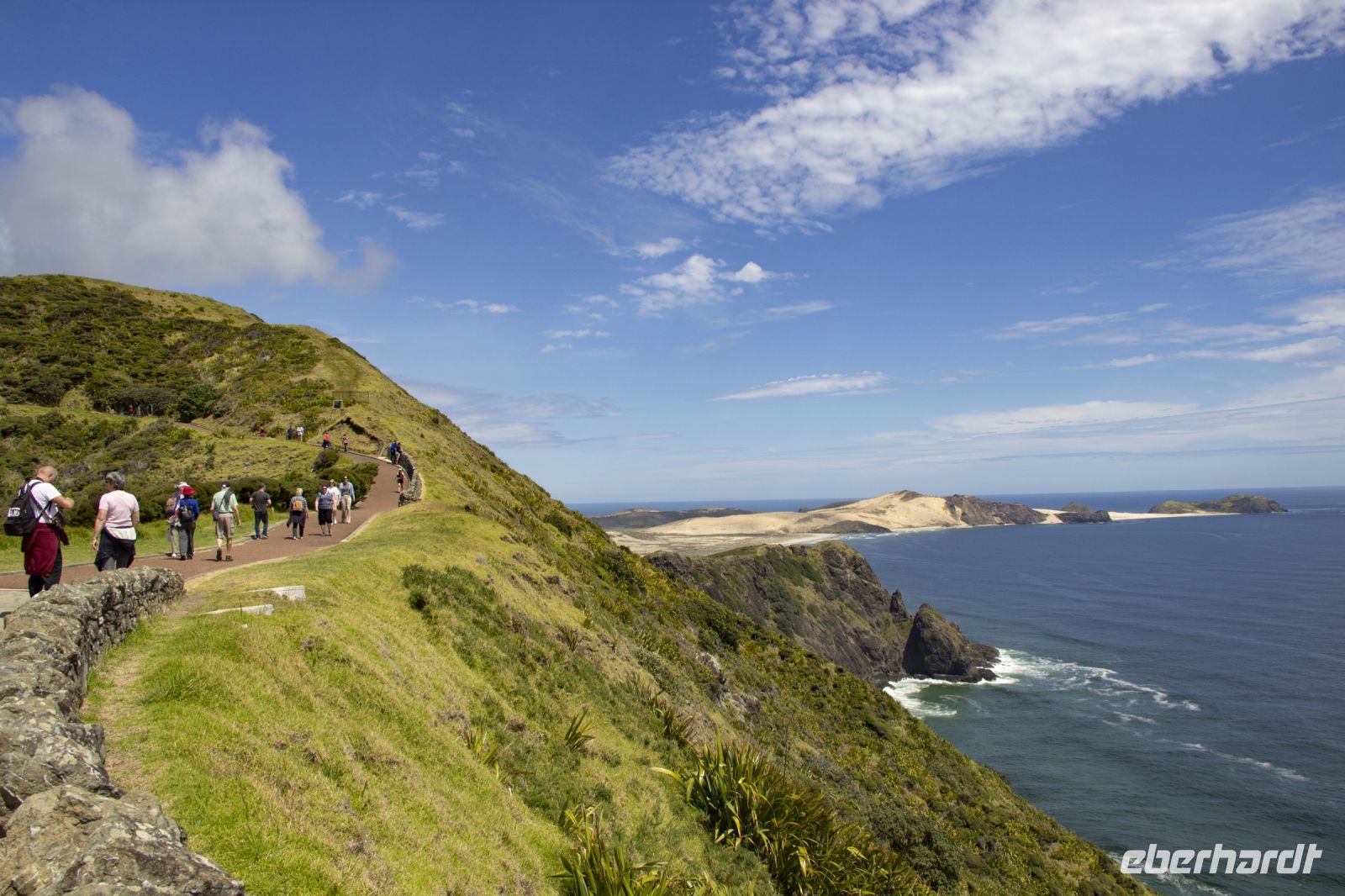 Viele Gäste entscheiden sich für die Tour zum Cape Reinga, dem nördlichsten erreichbaren Punkt Neuseelands. Früh am Morgen werden wir von einem örtlichen Maori-Guide abgeholt, der uns auf diesem besonderen Ausflug begleitet und uns die kulturelle und spirituelle Bedeutung dieser Region näherbringt. Auf dem Weg zum Kap passieren wir zahlreiche Obstplantagen, in denen Kiwis und Avocados angebaut werden. Diese fruchtbare Region ist bekannt für ihre hochwertigen landwirtschaftlichen Produkte.