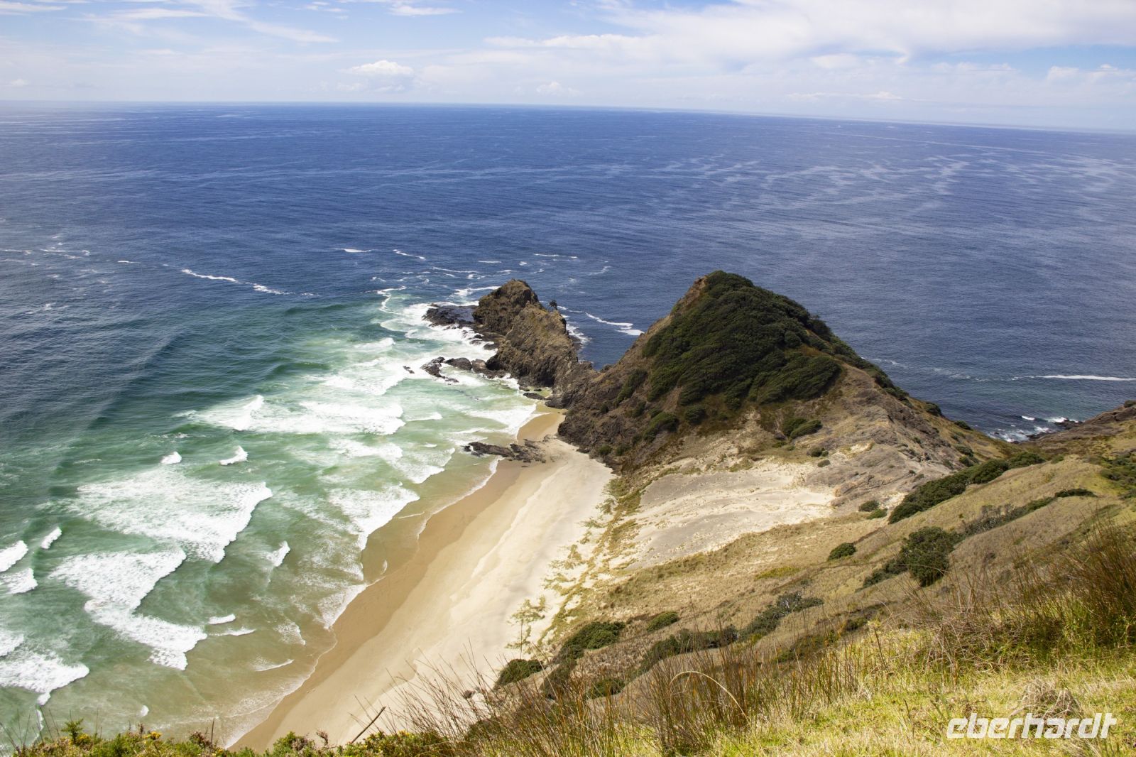 Während das Thermalwasser ein faszinierendes Erlebnis ist, wird am Hot Water Beach ausdrücklich davon abgeraten, im Meer zu schwimmen. Die starken und unberechenbaren Strömungen machen das Baden hier gefährlich. Daher fahren wir nach unserem Besuch direkt weiter zum Strand von Hahei, wo wir noch etwas Zeit zum Entspannen und Schwimmen haben. Der breite, weiße Sandstrand und das ruhige Wasser laden dazu ein, die Schönheit der Küste in vollen Zügen zu genießen.