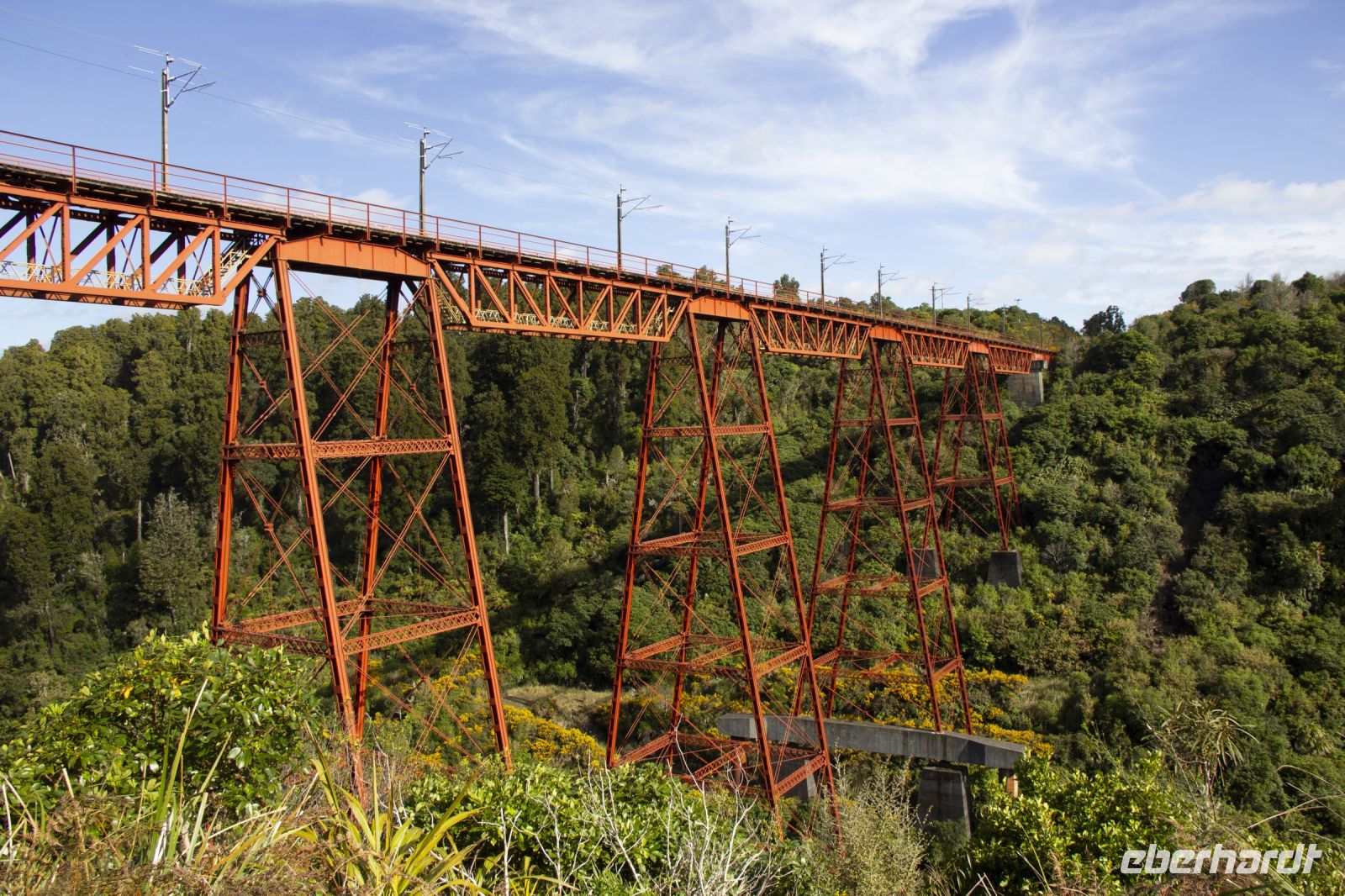 Gemächlich schlängelt sich der Makatote River durch die Landschaft, und wir halten für einen kurzen Fotostopp am beeindruckenden Makatote Viadukt. Diese historische Eisenbahnbrücke aus der frühen Kolonialzeit Neuseelands ist ein wunderbares Beispiel für die Ingenieurskunst des Landes.