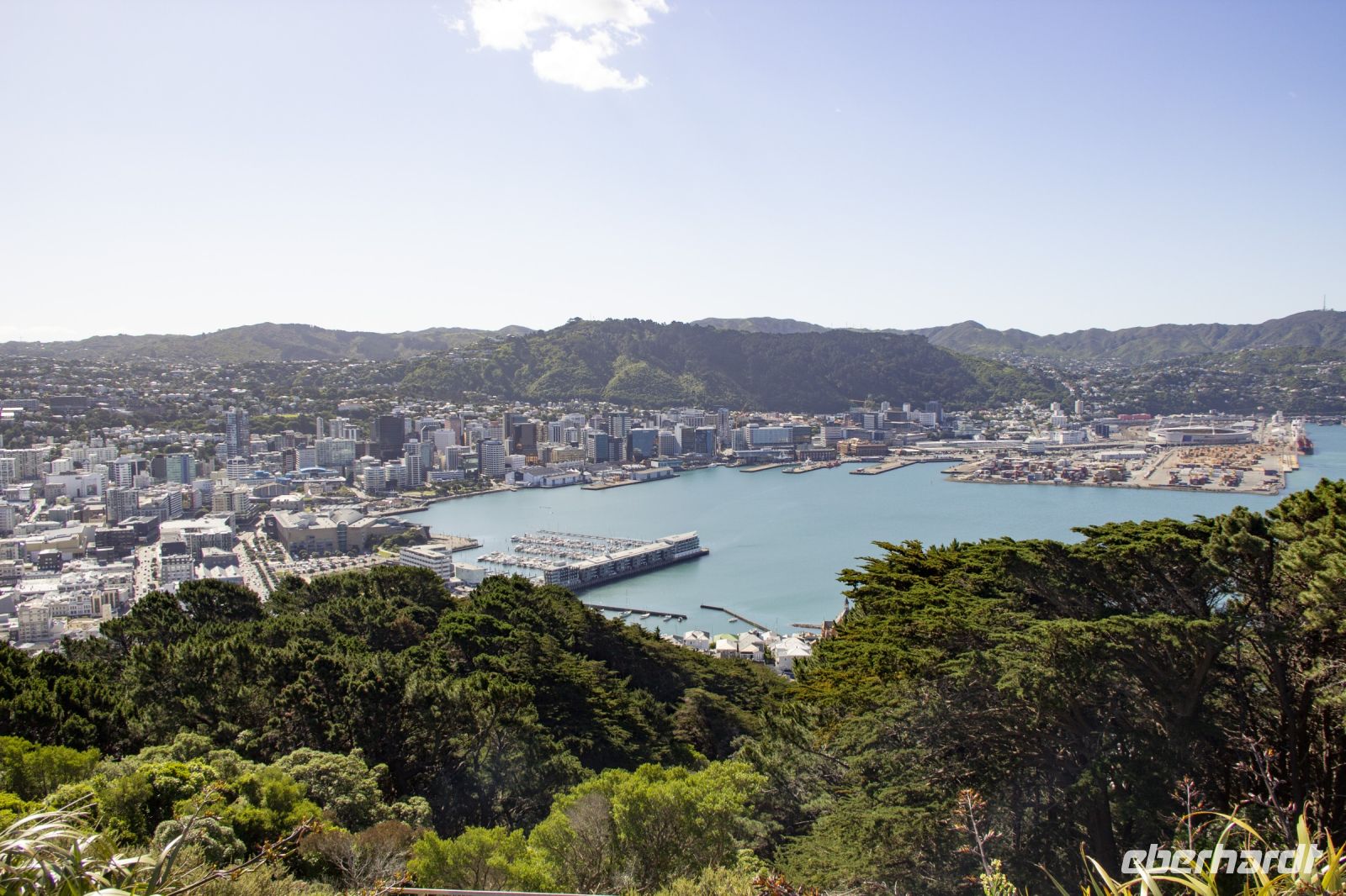 Ein weiterer Höhepunkt ist unser Stopp auf dem Mount Victoria. Von hier aus haben wir eine atemberaubende Aussicht über die Stadt, den Hafen und die umgebenden Hügel. Besonders faszinierend ist es, den Flugzeugen beim Starten und Landen zuzusehen, da die Landebahn in Wellington spektakulär direkt am Wasser liegt.