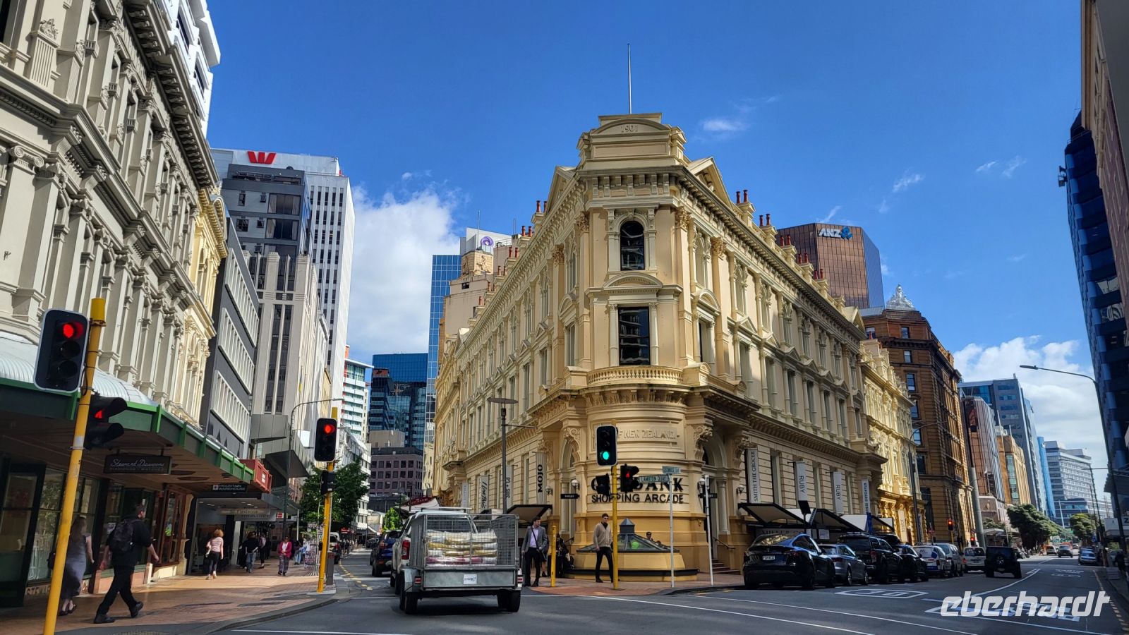 Nach unserer kurzen Orientierungsfahrt geht es weiter zu unserem Hotel, wo wir einchecken und uns ein wenig erholen können. Bevor wir am Abend gemeinsam essen, nutzen wir die Gelegenheit für einen Spaziergang über die Queen Street, Aucklands bekannteste Einkaufsstraße. Hier finden wir eine Vielzahl von Geschäften und Boutiquen, die von neuseeländischen Souvenirs bis hin zu internationaler Mode alles bieten. Einige von uns nutzen die Zeit, um die ersten Einkäufe zu erledigen.