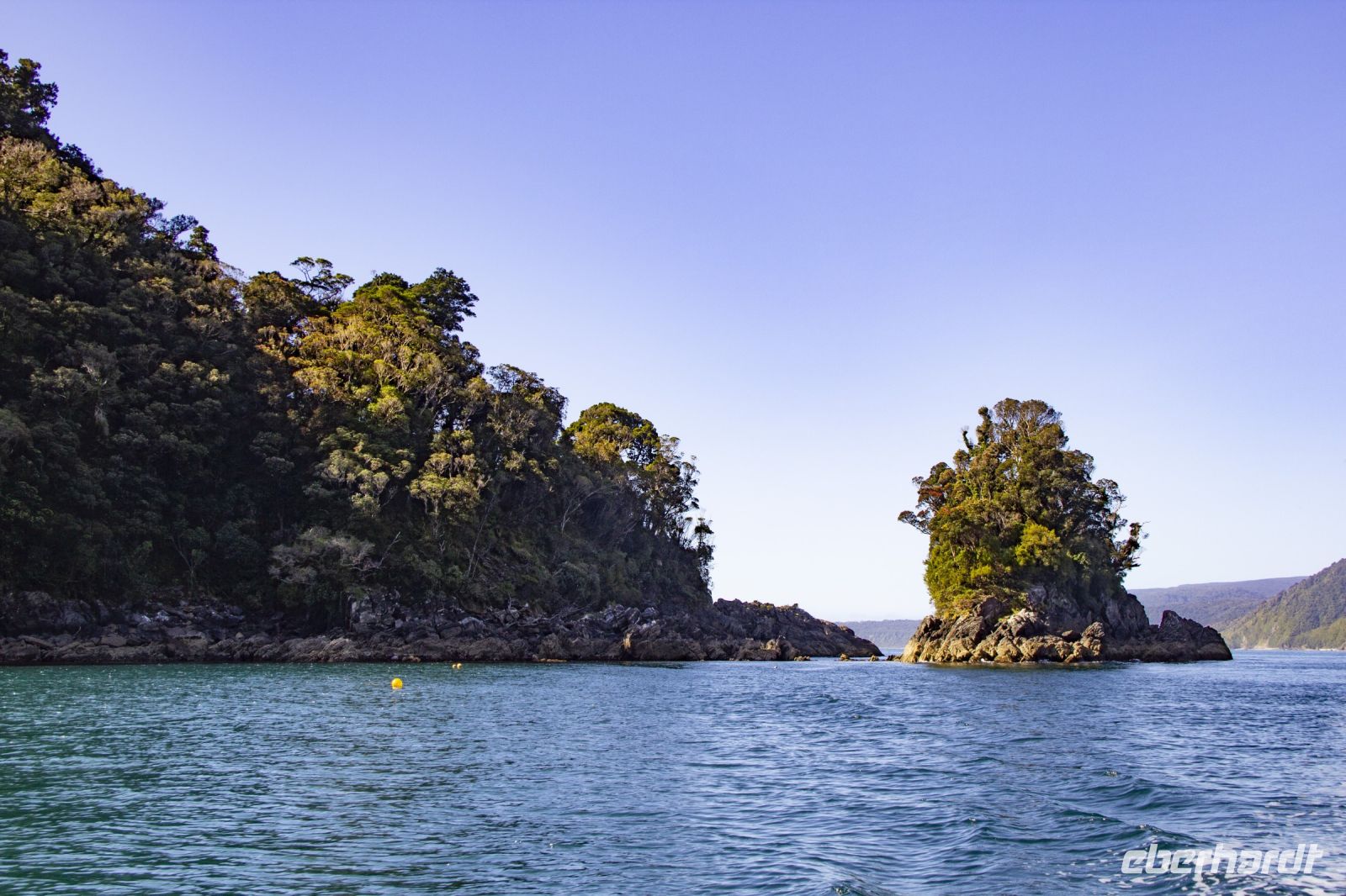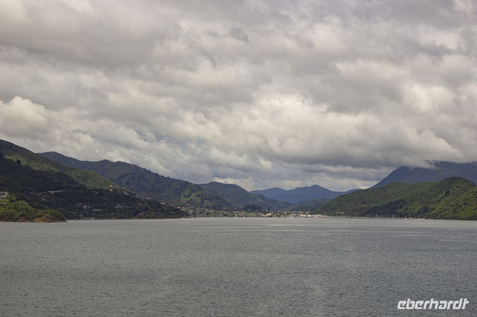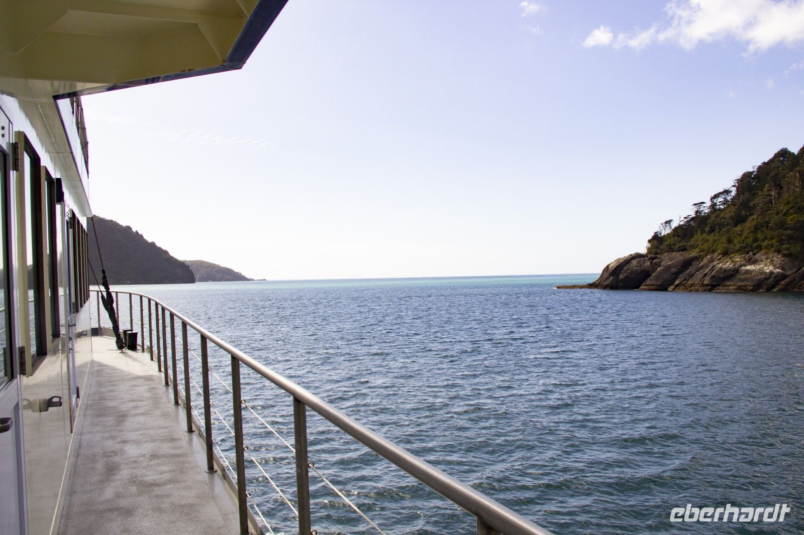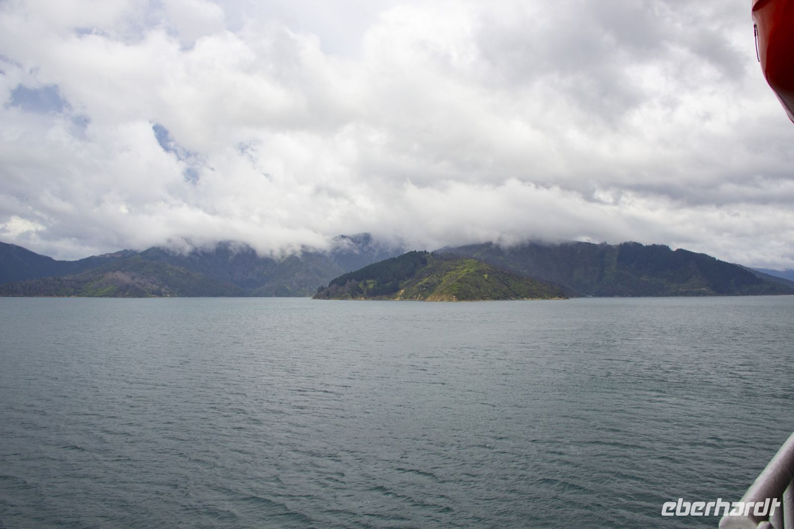 Heute starten wir früh in den Tag, denn wir wollen auf die Südinsel übersetzen. Mit dem Bus fahren wir zum Fährhafen in Wellington, um die Überfahrt zu beginnen. Die Bedingungen sind ideal: Das Wetter ist sonnig, das Wasser ruhig, und die Landschaft präsentiert sich von ihrer schönsten Seite. Vom Außenbereich der Fähre haben wir einen fantastischen Blick auf die tiefblaue Farbe des Wassers und die malerischen Küstenlinien.