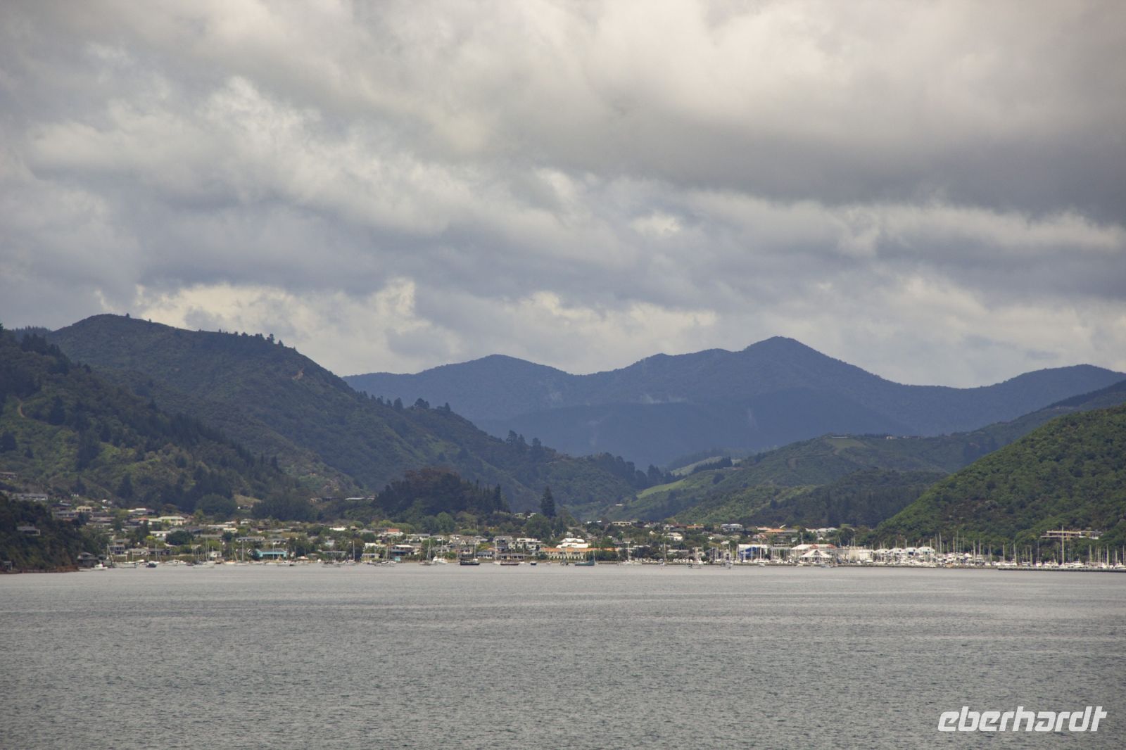 Nach etwa drei Stunden erreichen wir den Hafen von Picton auf der Südinsel, einen charmanten kleinen Ort, der von den grünen Hügeln der Marlborough Sounds umgeben ist. Von hier aus führt uns die Weiterfahrt nach Kaikoura durch eine beeindruckende Küstenlandschaft. Unterwegs entdecken wir zahlreiche Robben, die entweder faul am Strand oder auf den Felsen im Wasser liegen.
