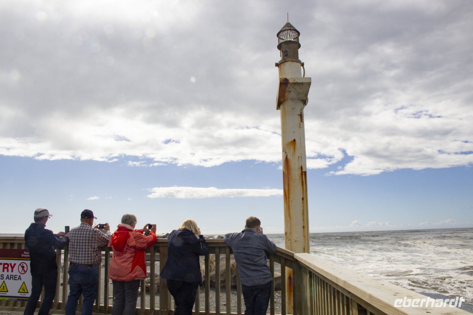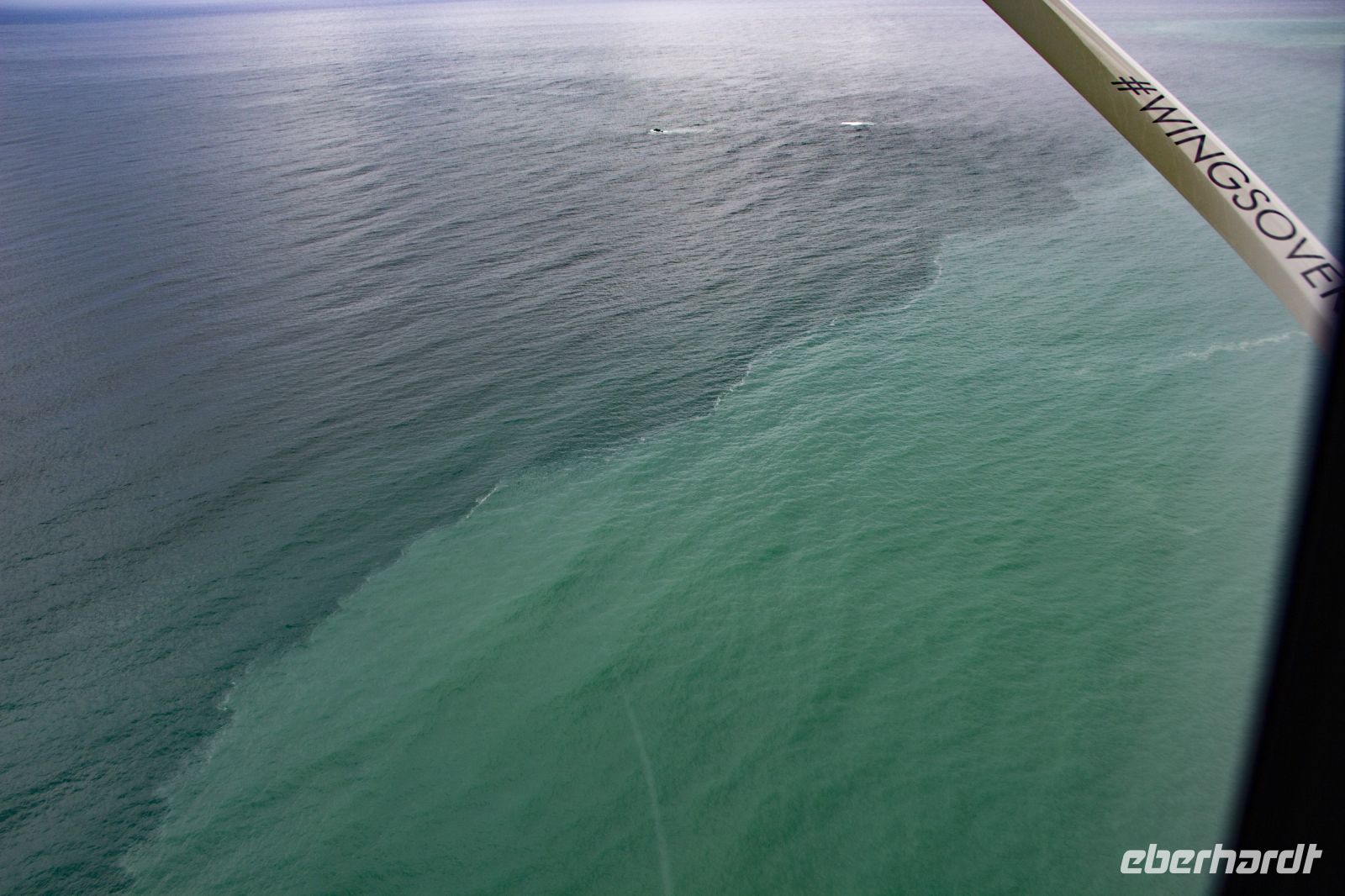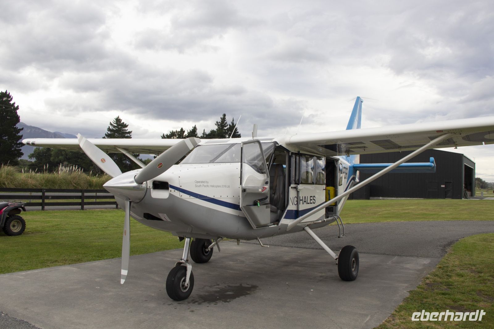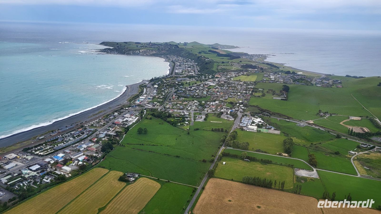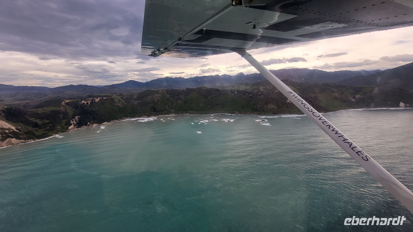 In Kaikoura angekommen, hat ein Teil der Gruppe Freizeit, um die malerische Küstenstadt auf eigene Faust zu erkunden. Kaikoura, was in der Sprache der Maori „Essen von Langusten“ bedeutet, ist bekannt für seine Meeresfrüchte und die Tierwelt. Der Rest der Gruppe nimmt an einem zubuchbaren Ausflug mit „Wings Over Whales“ teil. Bei diesem Rundflug geht es hoch über das Wasser, um nach den riesigen Meeressäugern Ausschau zu halten, die in dieser Region häufig zu sehen sind. Obwohl das Wetter zwischenzeitlich ein wenig unsicher aussieht, haben wir großes Glück: Die Sicht ist ausgezeichnet, und wir genießen einen spektakulären Blick über das türkisfarbene Meer und die weiten Küstenlinien der Südinsel. Leider bleiben die Wale uns heute verborgen, doch der Flug selbst ist ein unvergessliches Erlebnis.