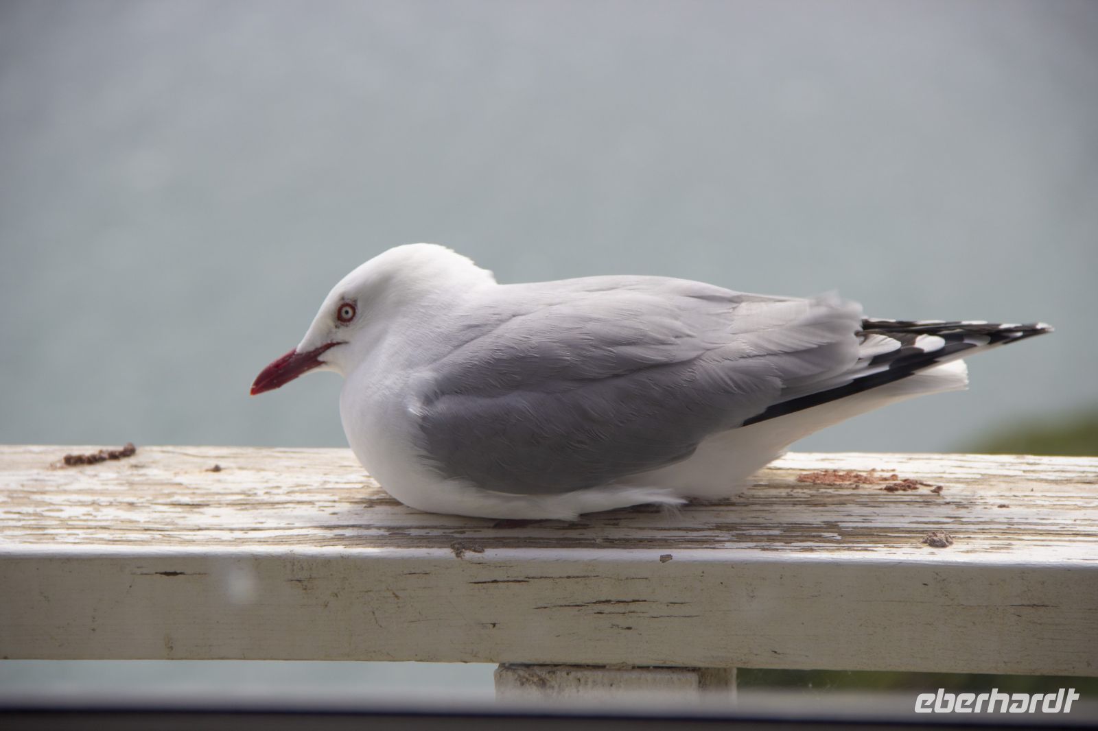Nach einer kurzen Pause fahren wir weiter und passieren Dunedin, die größte Stadt der Region Otago. Schließlich erreichen wir die Royal Albatross Colony auf der Otago Peninsula. Diese weltweit einzigartige Brutkolonie für die majestätischen Königsalbatrosse befindet sich auf einem Hügel mit herrlicher Aussicht auf die Küste. Schon bei unserer Ankunft können wir die ersten brütenden Vögel beobachten, und auch Rotschnabelmöwen nutzen diesen Ort als Nistplatz.