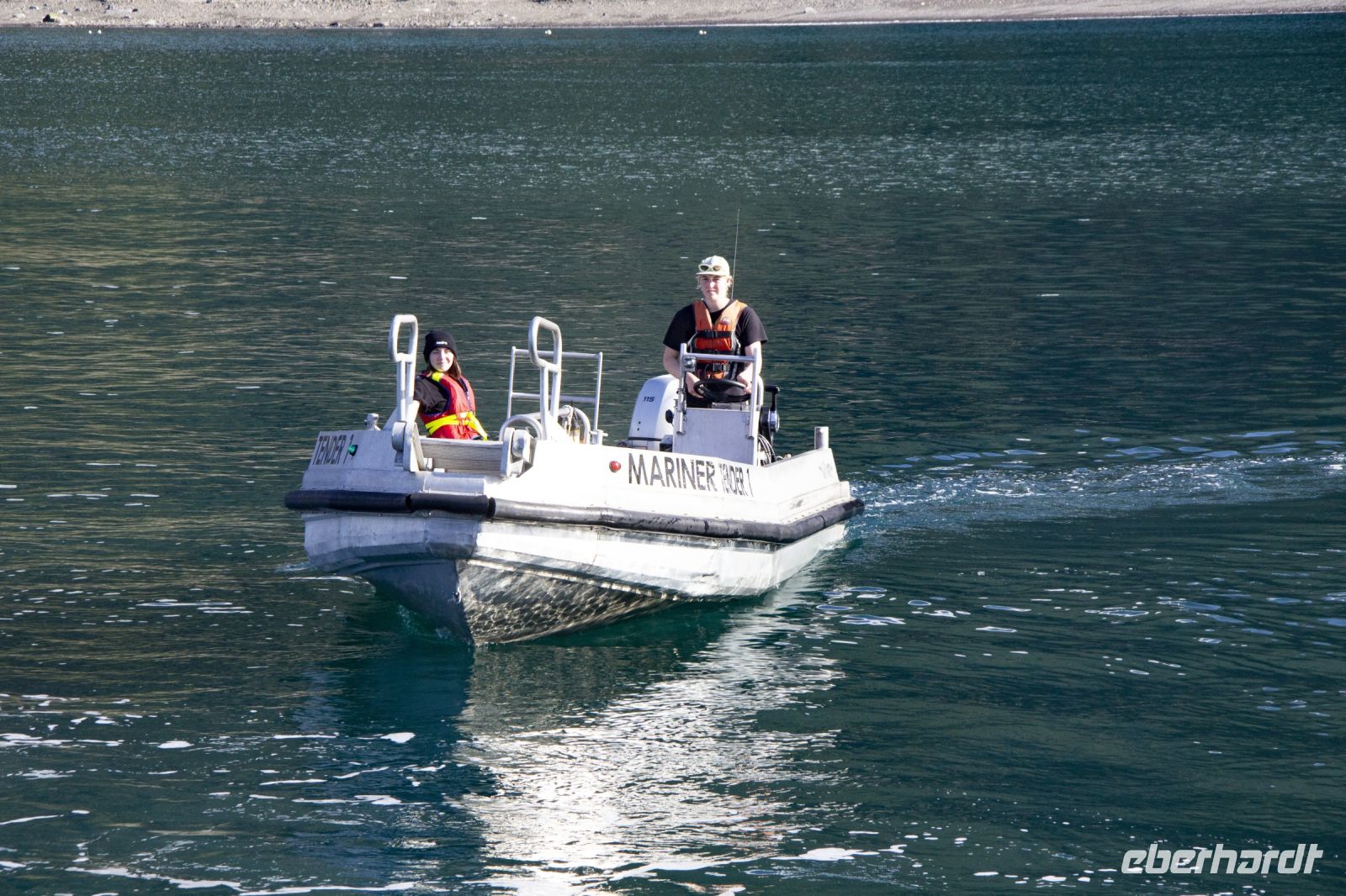 Von den Bergen umgeben haben wir die gesamte Nacht vor Anker gelegen, und die ruhige Umgebung des Fjords hat uns einen erholsamen Schlaf beschert. Heute Morgen lässt sich der Sonnenaufgang nur erahnen, denn die umliegenden Berge leuchten in den schönsten Farben, während der Himmel langsam heller wird. Nach dem Frühstück an Bord geht es direkt los, denn wir möchten die faszinierende Tierwelt des Fjords entdecken.