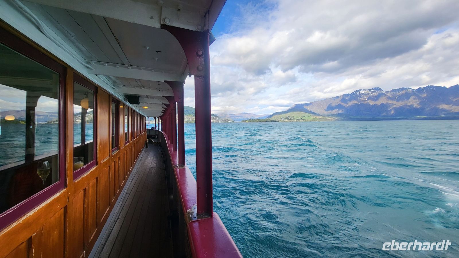 Schließlich bringt uns die Earnslaw zurück nach Queenstown, während wir den Abend entspannt ausklingen lassen und die nächtliche Stille des Sees genießen. Kurz bevor wir anlegen wird noch 99 Luftballons von Nena gespielt :D