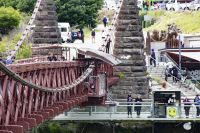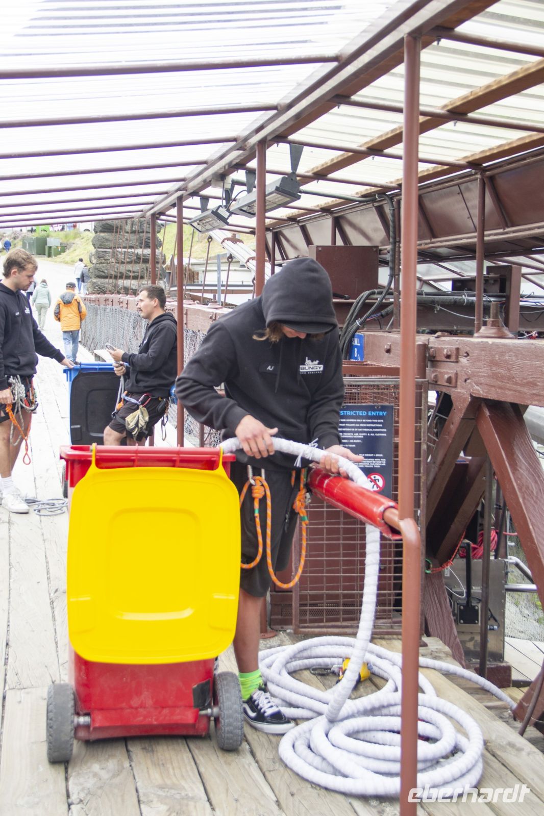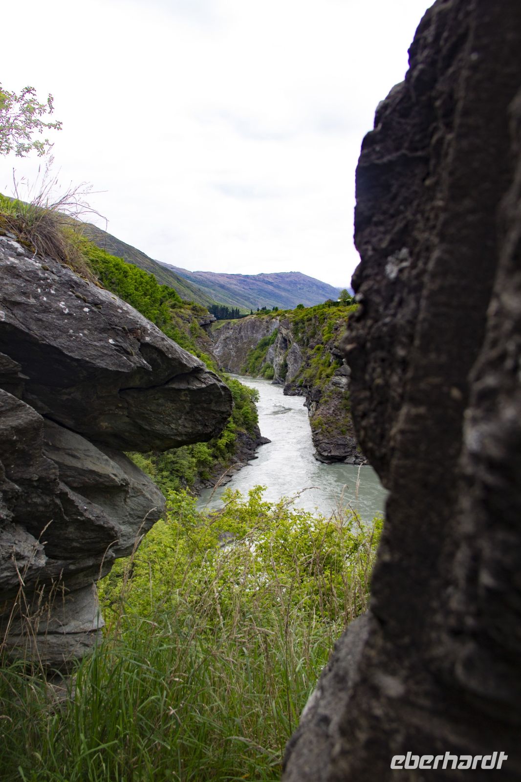 Weiter geht es zur Kawarau-Brücke, dem Geburtsort des modernen Bungeejumpings. Hier wurde 1988 der erste kommerzielle Bungeejump veranstaltet, ein Nervenkitzel, der Neuseeland seither weltberühmt gemacht hat. Obwohl heute niemand springt, können wir uns gut vorstellen, wie aufregend und furchterregend ein Sprung von dieser Brücke sein muss – 43 Meter über dem türkisfarbenen Wasser des Kawarau Rivers.