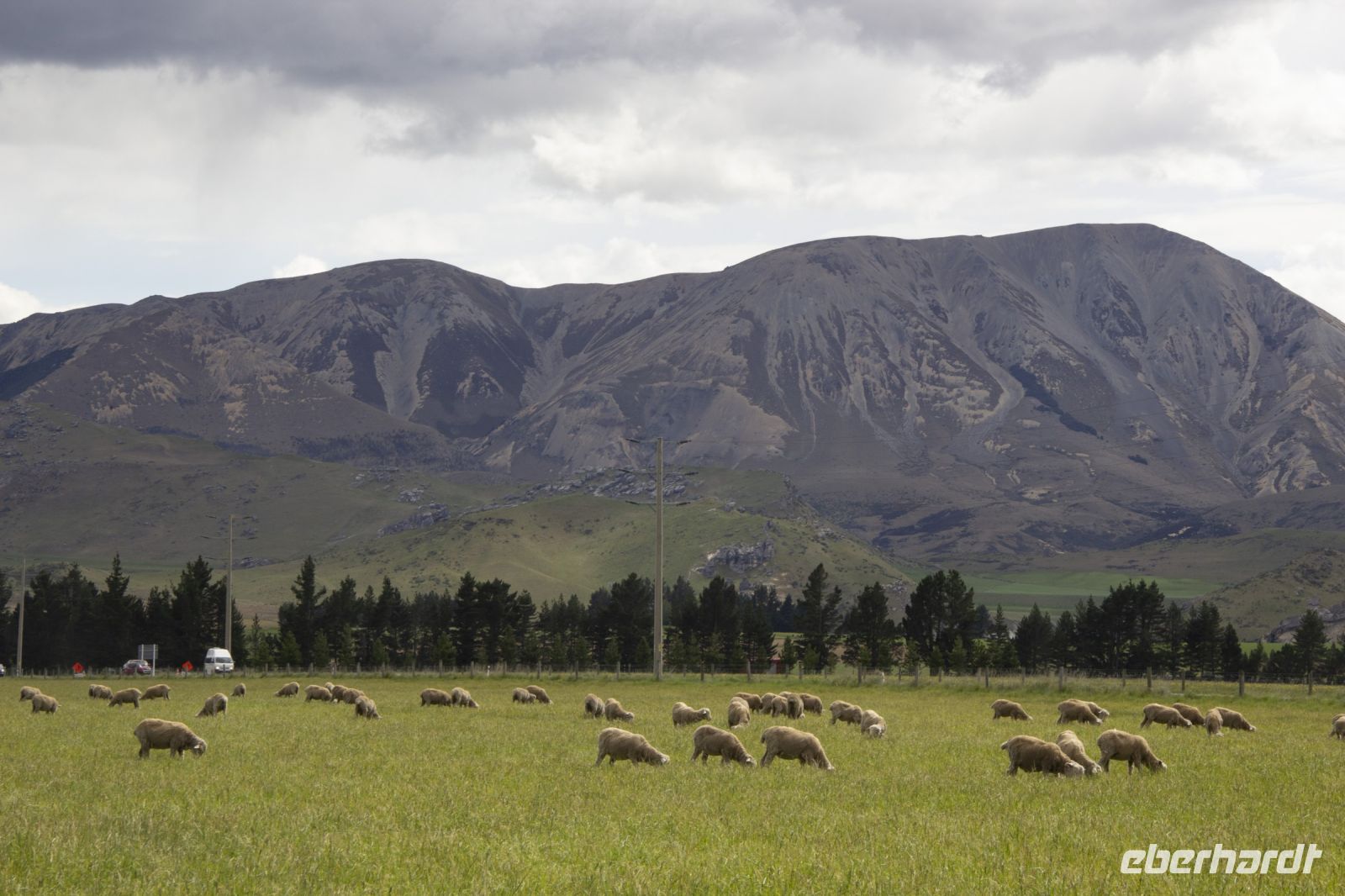 Weiter geht es durch eine malerische Landschaft, die von weiten Weiden geprägt ist. Hier sehen wir zahlreiche Schafe und Rinder, die typisch für die Landwirtschaft in Neuseeland sind, aber auch ein paar Alpakas, die das Bild mit ihrer exotischen Präsenz bereichern. Während wir gen Süden fahren, steigen die Temperaturen dank der immer kräftigeren Sonneneinstrahlung deutlich an, was uns die Schichten unserer Winterkleidung langsam wieder ablegen lässt.