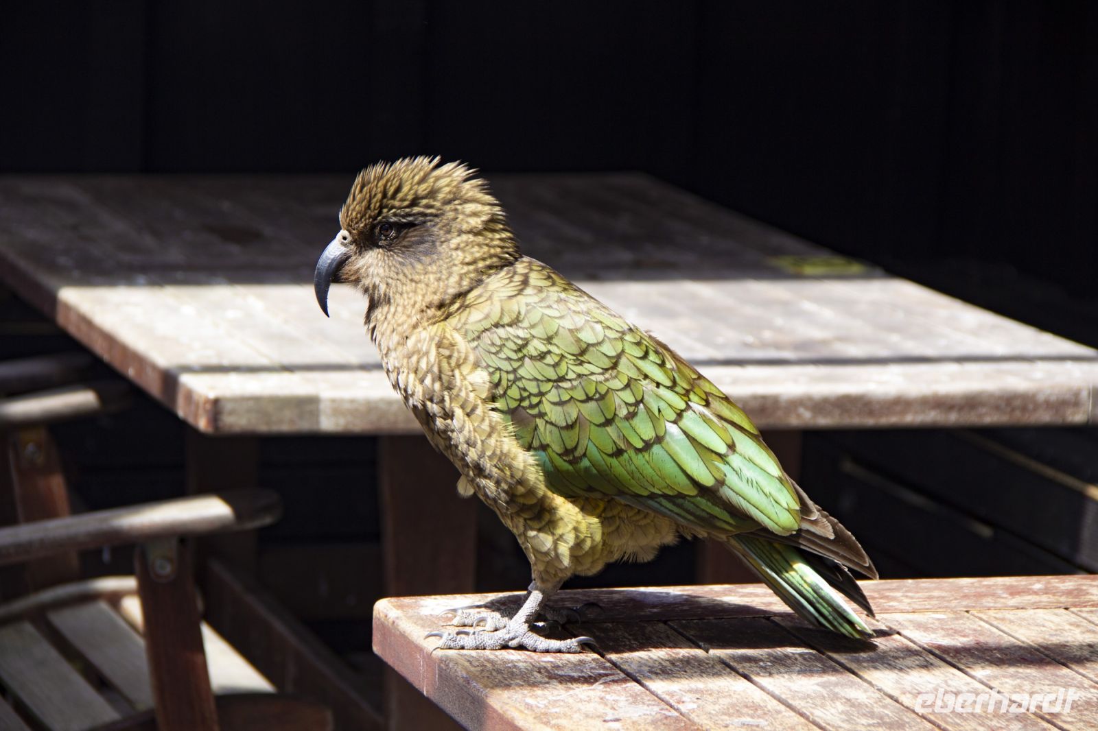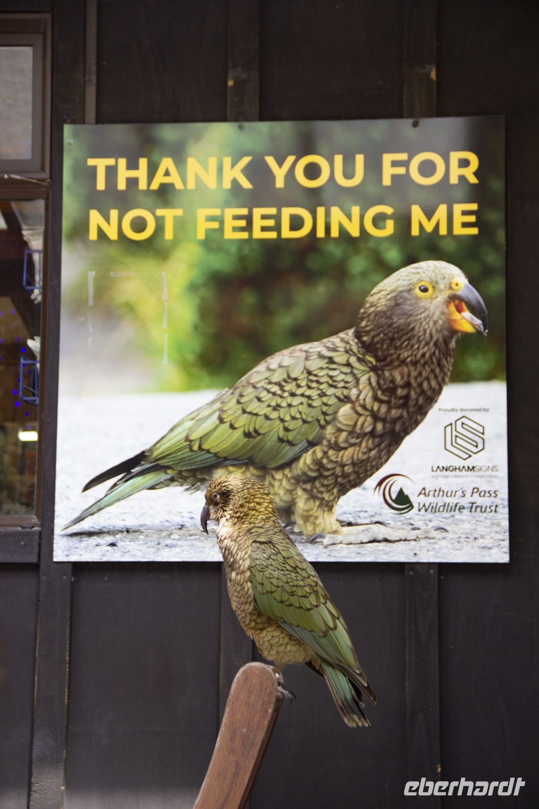 Unsere Route führt uns durch den Arthur's Pass, einen der bekanntesten und malerischsten Gebirgspässe Neuseelands. Dieser Pass verbindet die östliche Canterbury-Ebene mit der wilden Westküste. Hier legen wir eine Pause ein, denn der Ort ist bekannt für die frechen Keas, die weltweit einzigen alpinen Papageien. Die intelligenten und neugierigen Vögel unterhalten uns mit ihrem frechen Verhalten – sei es durch das Herumklettern auf Autos oder das Probieren von allem, was sie erreichen können. Sie sind ein echtes Highlight dieses Zwischenstopps.