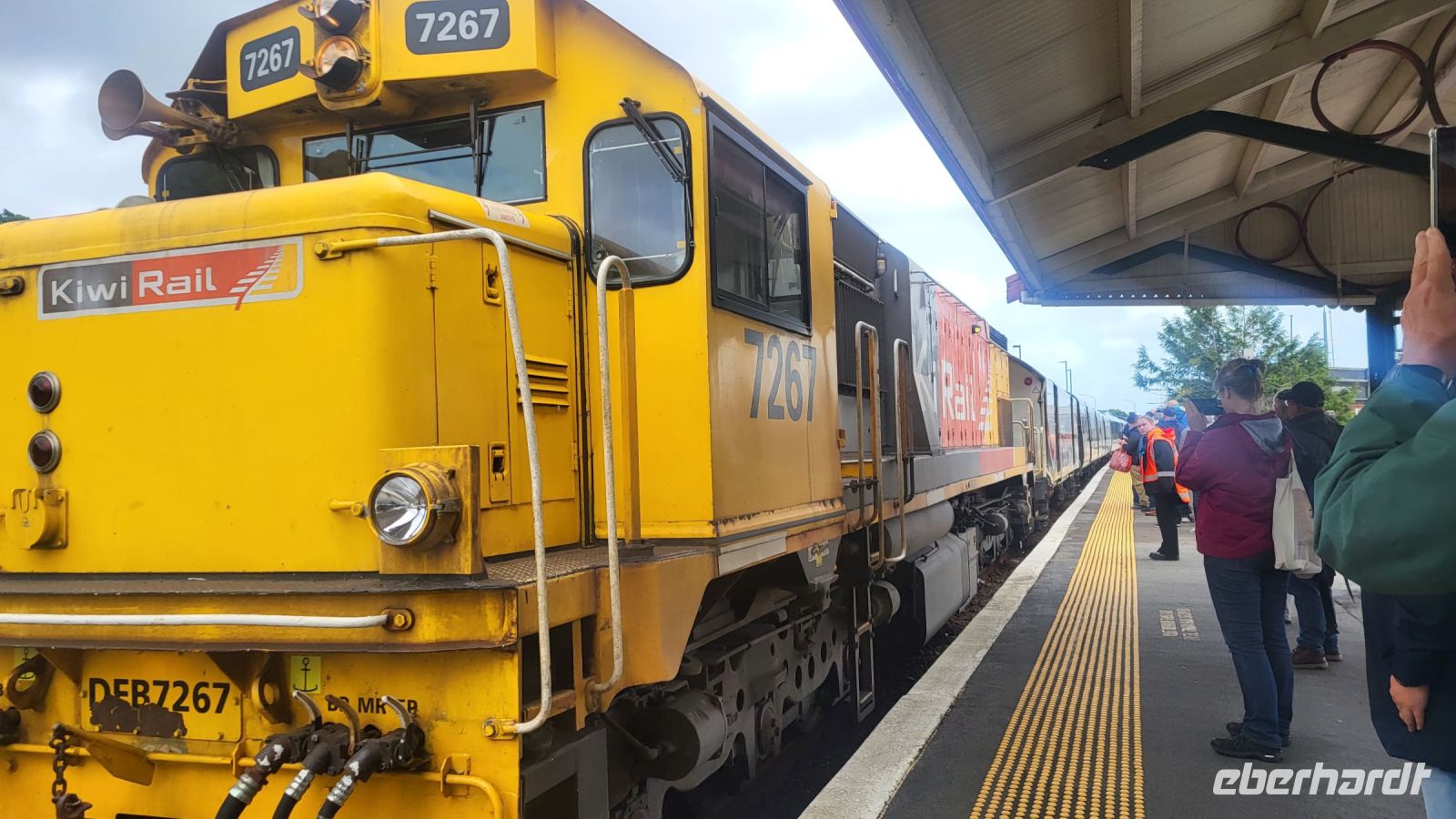 Die Zugfahrt mit dem TranzAlpine ist ein absolutes Highlight und gilt als eine der schönsten Bahnreisen der Welt. Die etwa fünfstündige Fahrt führt durch die dramatische Landschaft der Südalpen, wobei die Szenerie sich ständig verändert. Von üppigen Regenwäldern und tiefen Schluchten über alpine Ebenen bis hin zu weiten Tälern bietet die Strecke spektakuläre Ausblicke. Auf dem Weg nach Christchurch passieren wir 15 Tunnel, darunter den beeindruckenden Otira-Tunnel mit einer Länge von 8,5 Kilometern. Aufgrund der Steigung des Tunnels werden vorne und hinten jeweils Diesellokomotiven eingesetzt, um den Zug über den Arthur's Pass zu ziehen. Nach dem Pass klart das Wetter auf, und blauer Himmel sowie Sonnenschein begleiten uns den Rest des Weges nach Christchurch.