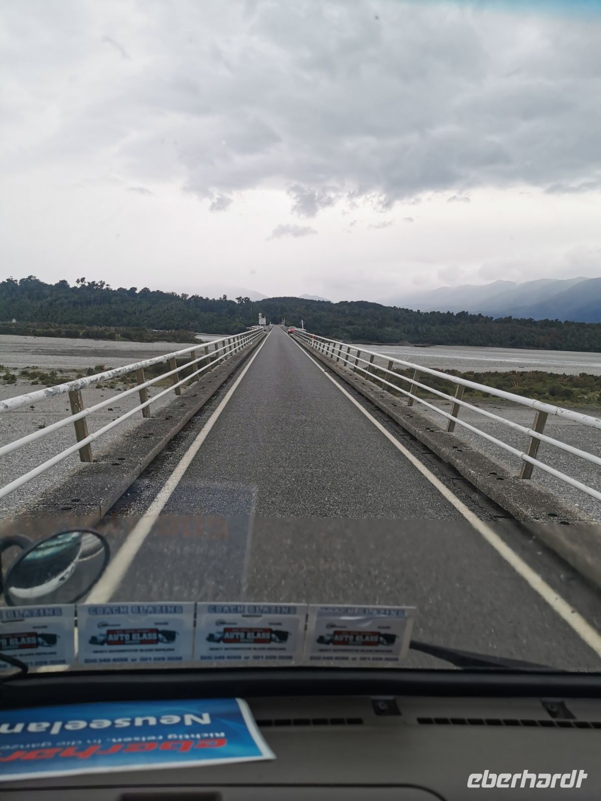 Die Brücke über den Franz-Josef-Abfluss, den Waiho River, war vor einiger Zeit weggespült worden und die Küstenverbindung dadurch unterbrochen, bis eine Behelfsbrücke errichtet worden ist. Die Infrastruktur ist vulnerabel. 27 Brücken ziehen sich die Küste entlang und es gibt keinen kurzen Umweg, sollte eine ausfallen. Der State Highway 6 führt die Küste entlang.