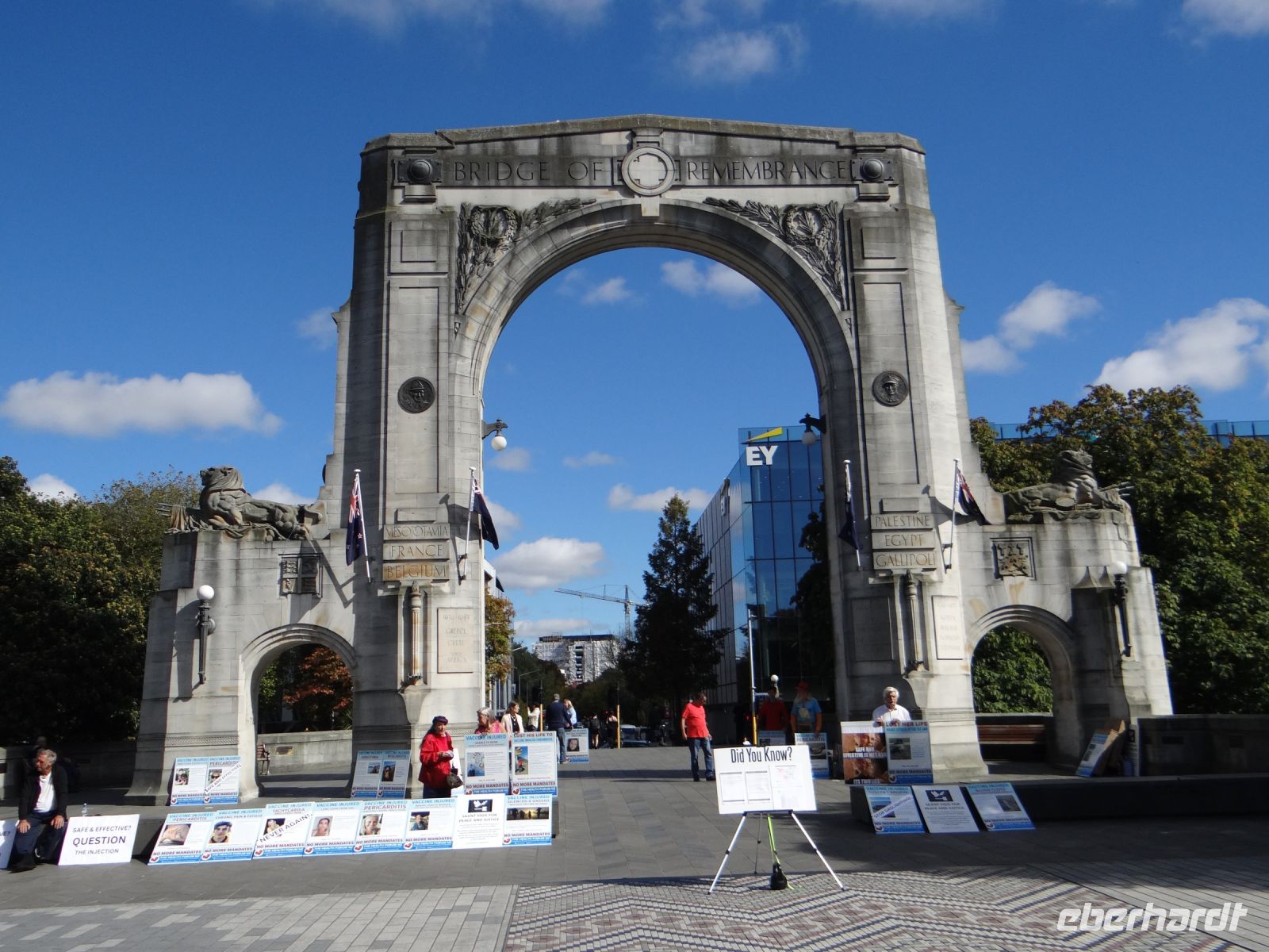 Der Regen ist der Sonne gewichen, wir steigen am Hafen aus, genießen die Brise und die Sonne. Der Hafen zeigt, die Neuseeländer sind wasserverliebt. Rudern gehört zum Schulsport und die Segler gehören zu den besten der Welt. Wir fahren dann hoch zum War Memorial Museum, einem Museumstempel mit einem Denkmal vor der Tür zu Ehren der Gefallen. Was auf den ersten Blick verwirrt – ein Museum in Gedenken des Krieges – wird uns nun jeden Tag begegnen. Das Land ist von einem Trauma befallen.