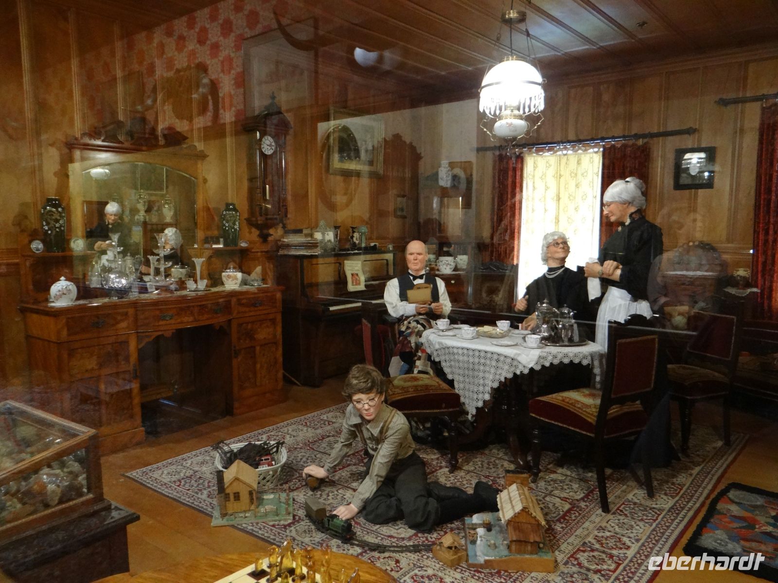 In großen Schaufenstern wird der Alltag des Bürgertums darstellt sowie einzelne Handwerksarten. Hier findet man die Familie am Tisch, die Braut wird im Schlafzimmer hergerichtet und man schaut in die Werkstatt des Schusters oder in die Praxis des Zahnarztes. Die Räume sind liebevoll ausstaffiert, so dass es eine Menge zu gucken gibt.